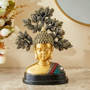 Modern Unique Resin Buddha in White Crescent Moon – Spiritual – Stylish Accent