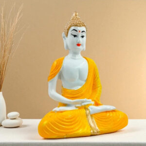 Stylish Serene Meditating Buddha Statue White & Orange Resin-Crafted Decoration – Home Decoration