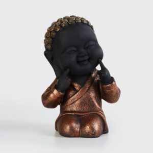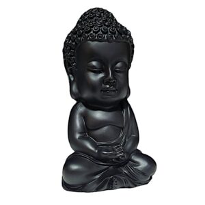 Stylish Zen Little Buddha Monk Figure – Matte Black Resin-Crafted for Calm, Meditation & Home Sanctuary – Artful Decor Piece