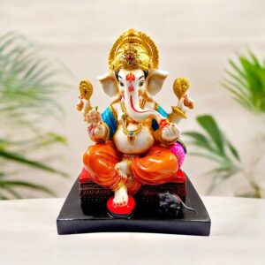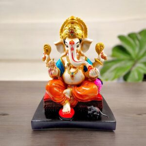 Lord Ganesha Idol Sitting With Mouse & Writing Colorful Design Best for Home Decor - Karigaari India Aesthetic Home DecorLord Ganesha Idol Sitting With Mouse & Writing Colorful Design Best for Home Decor - Karigaari India Aesthetic Home Decor