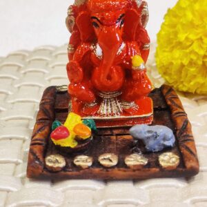 Unique Colorful Red Ganesha Statue | Resin-Crafted Display Piece with Modak & Mouse for Power, Prosperity & Lucky Decoration – Home Decoration