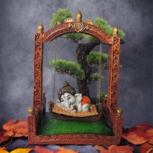 Unique Ganesha on Swing Centerpiece – Resin Decorative Statue with Tree & Border for Home Decor & Gifting – Stylish Accent