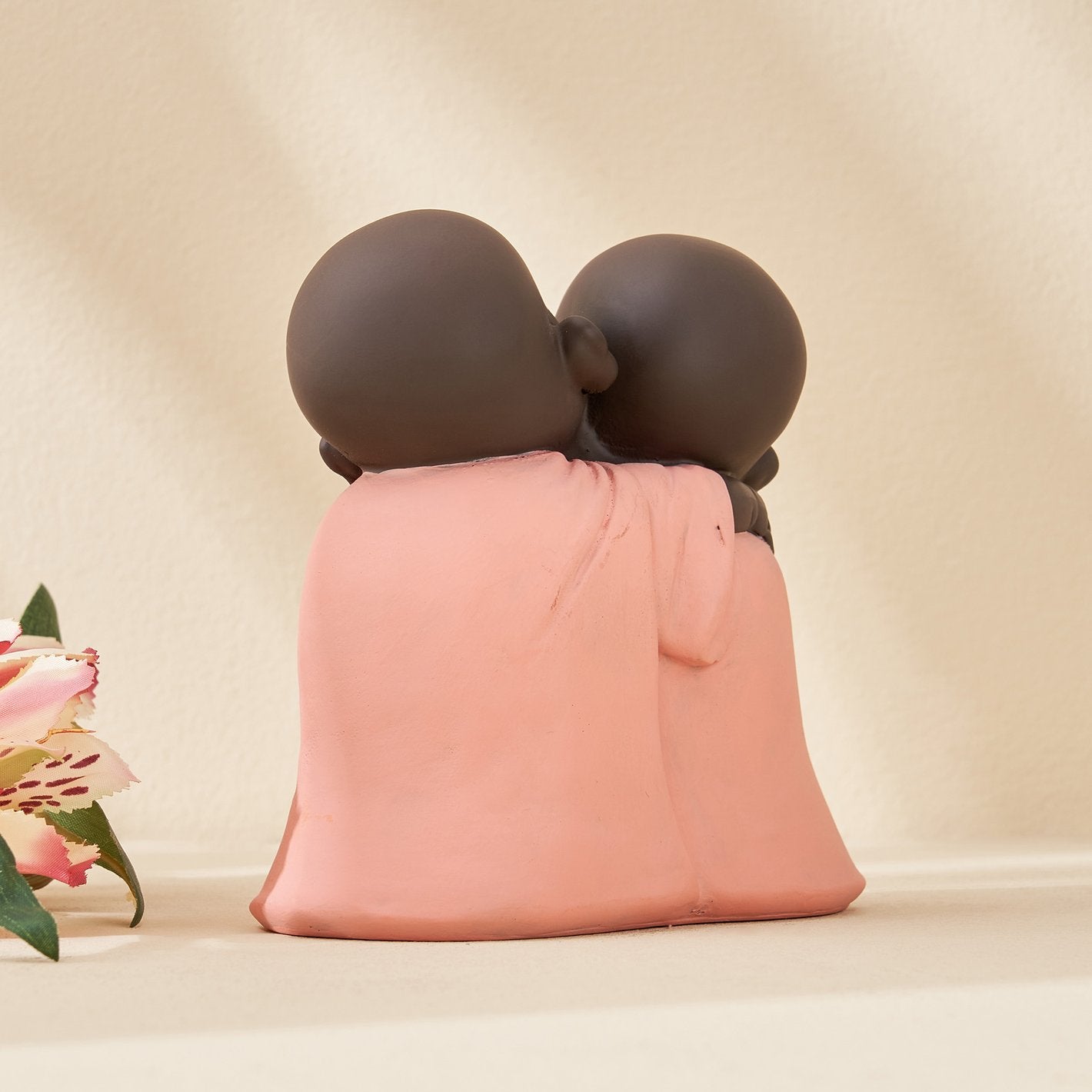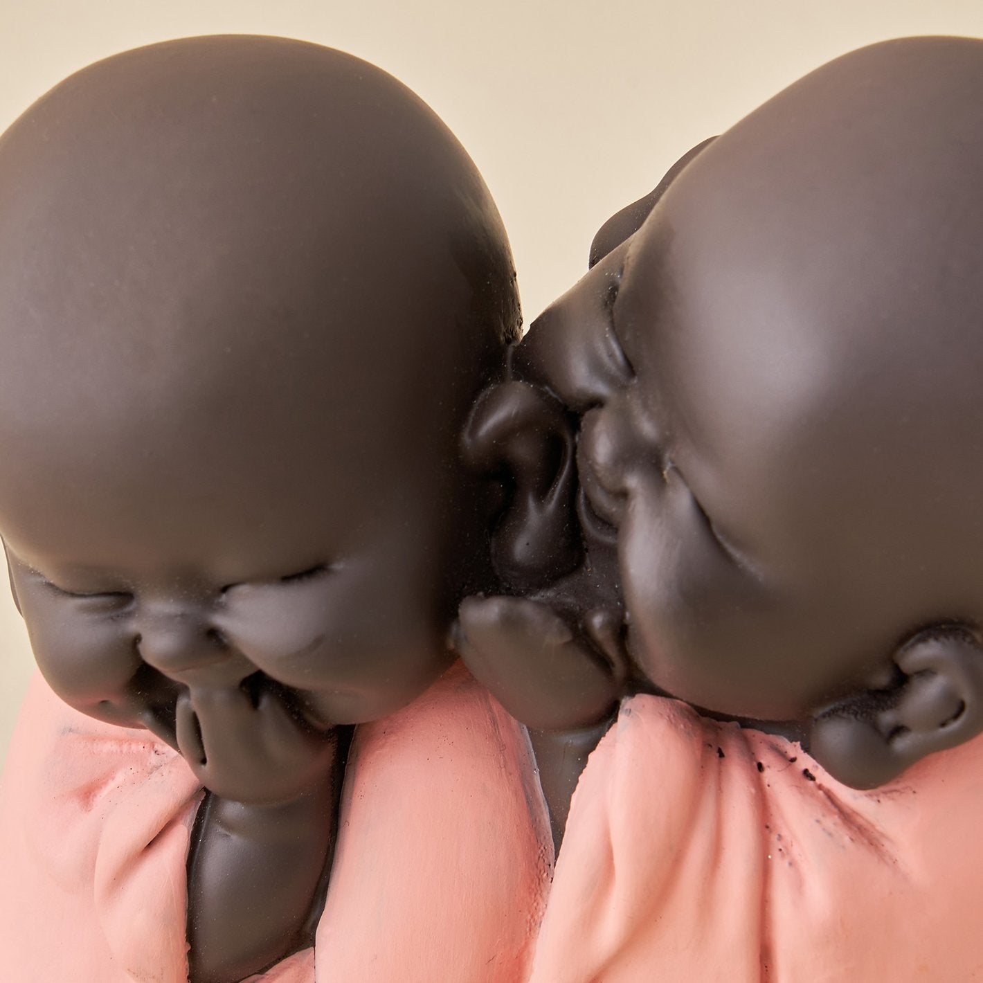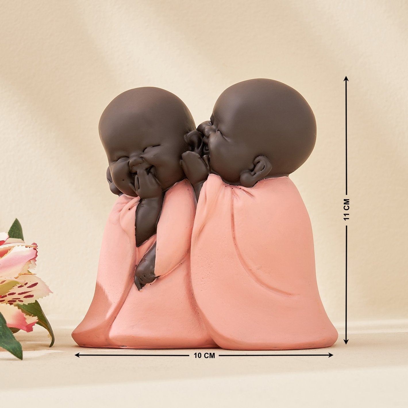 Expressive and luxurious, this Buddha statue is beautifully made from handcrafted resin. An excellent choice for spiritual and decorative gifting, gracefully decorating your table, shelf or altar. Charming Monk Pair Design: Features two little monks whispering playfully bringing a blend of innocence, joy, and serenity to your home decor. Soothing Pink Robes and Matte Finish: Their soft pastel robes and smooth resin-crafted finish give a contemporary, minimalist look with a warm aesthetic. Perfect for Any Corner: Heartfelt Gift Choice: A meaningful and adorable gift option for birthdays, little showers, housewarmings, and festive occasions like Rakhi or Diwali. Emblem of Positivity and Peace: These statues promote mindfulness, harmony, and spiritual well- making them perfect for calming environments. High-Quality Resin-Crafted Craftsmanship: Lightweight yet durable, with fine details that enhance their lifelike expressions and postures. Compact and Decorative: Doesnt require much space yet makes a noticeable visual impact on shelves, mantels, or bedside tables. An elegant addition to your home or workspace.