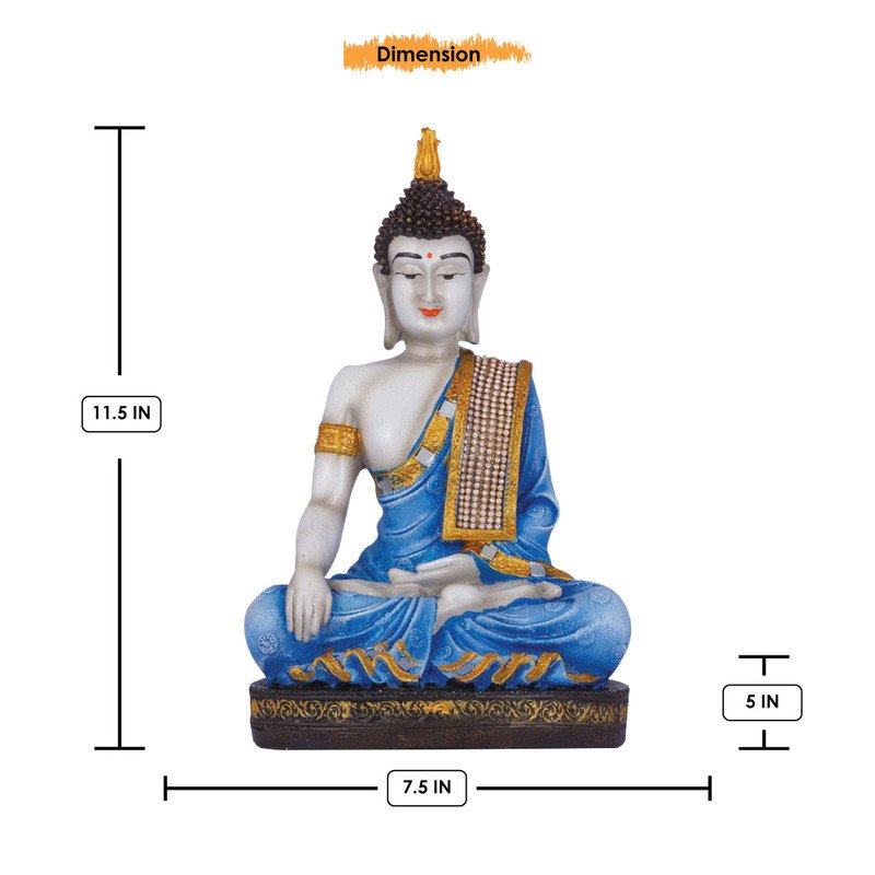 Chic Artisan Ployresin Lord Buddha Meditating Figurine Display Piece Home Decor/Office Home Decor/Spiritual Gift, Blue – Unique Decor Piece