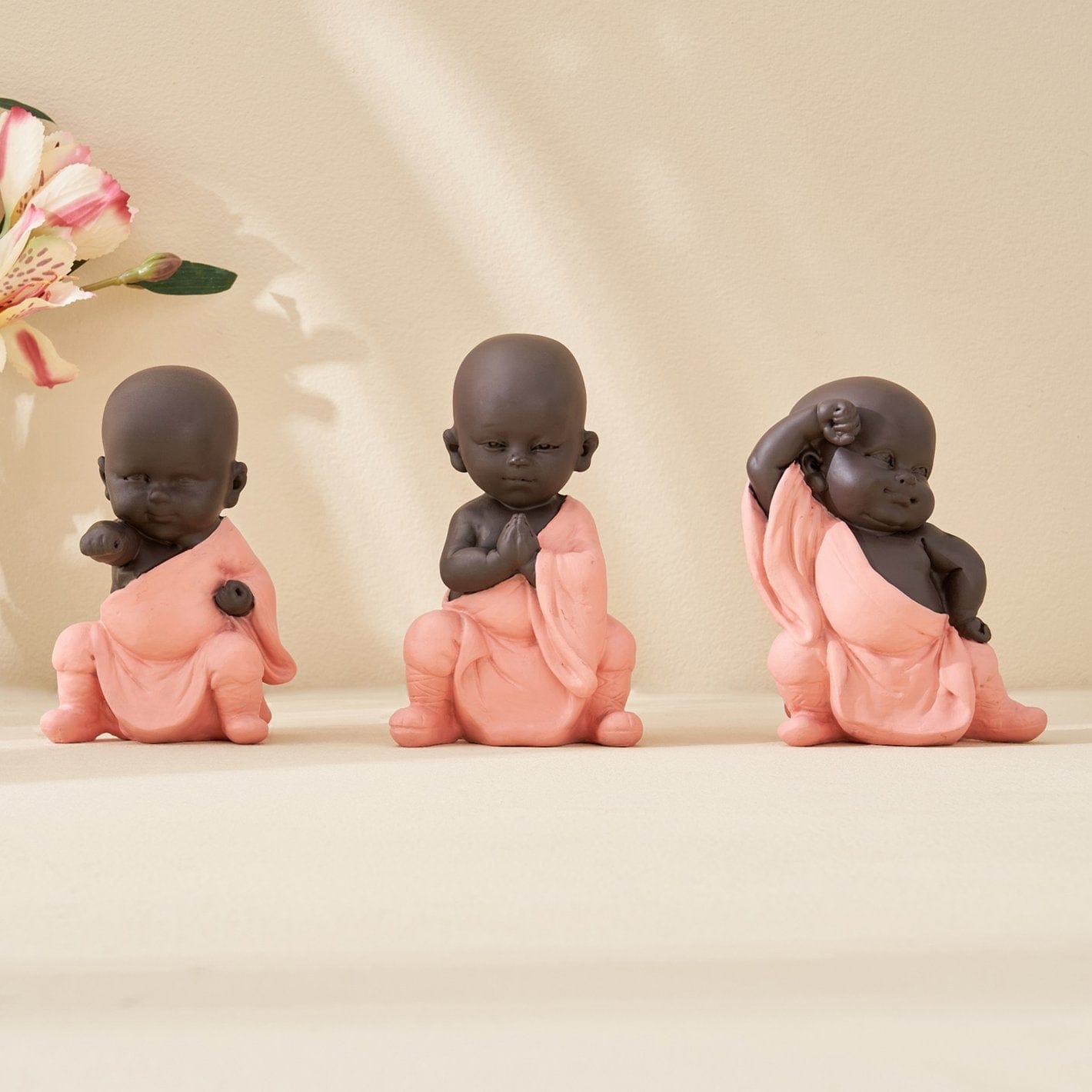 Chic Corsica Set of 3 Resin-Crafted Kung Fu Mini Monks – Modern Ornament