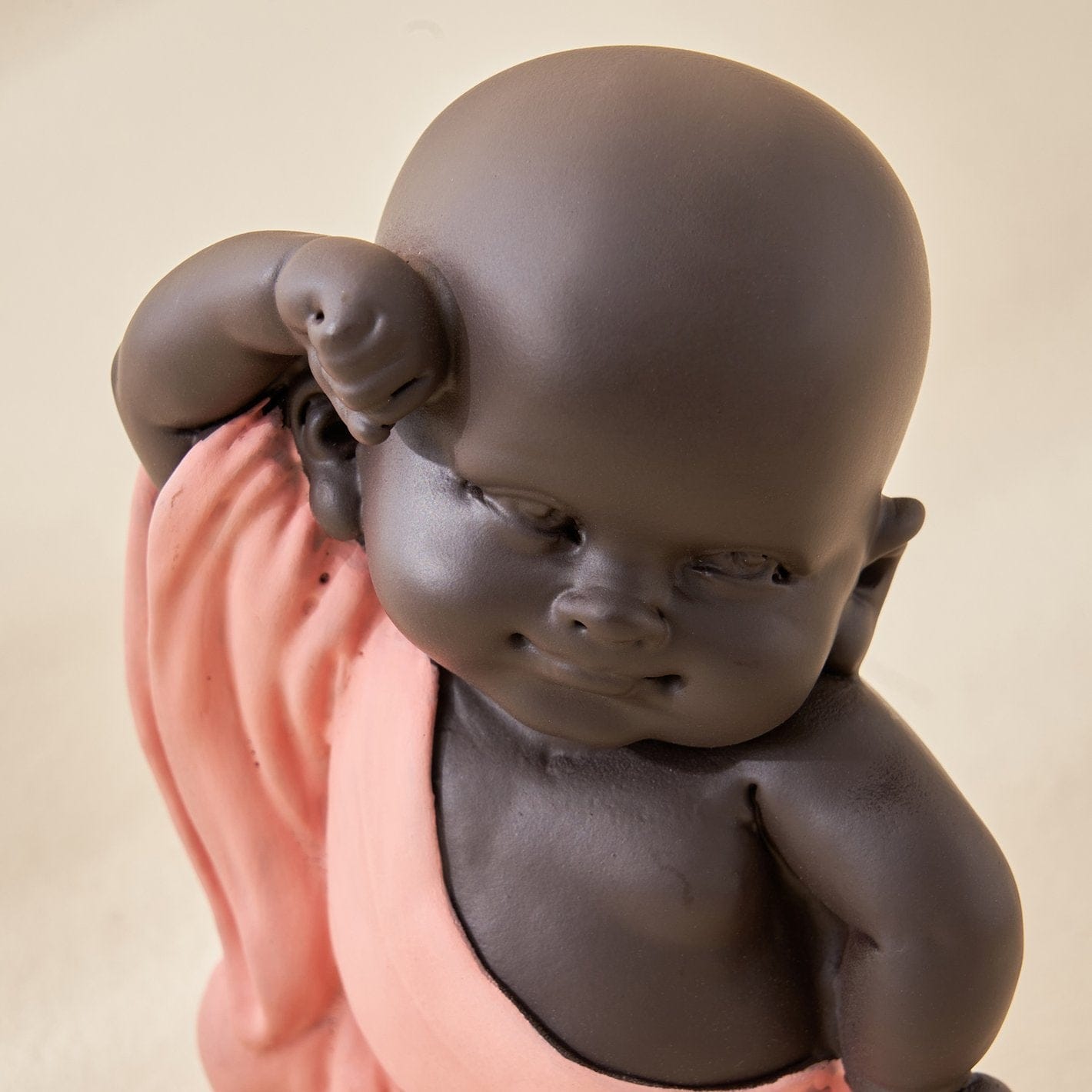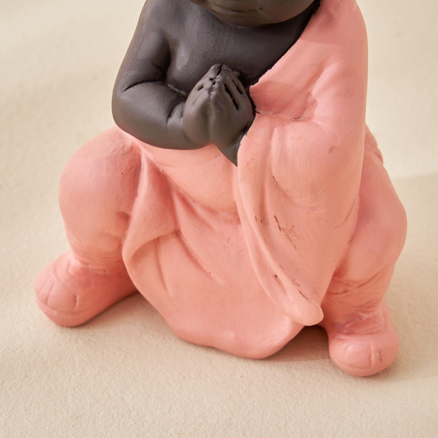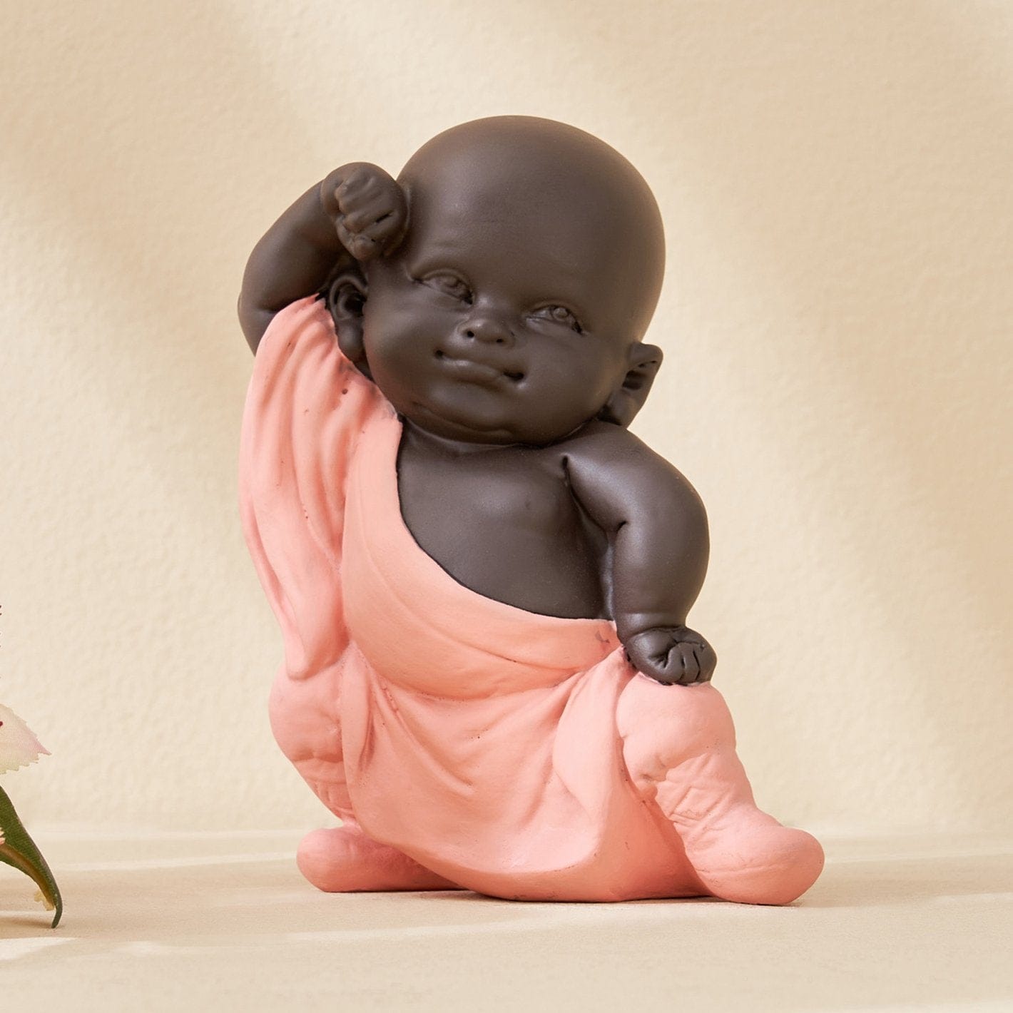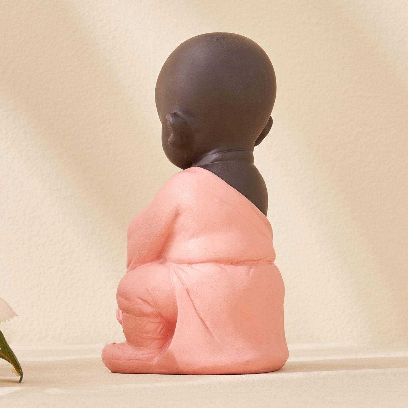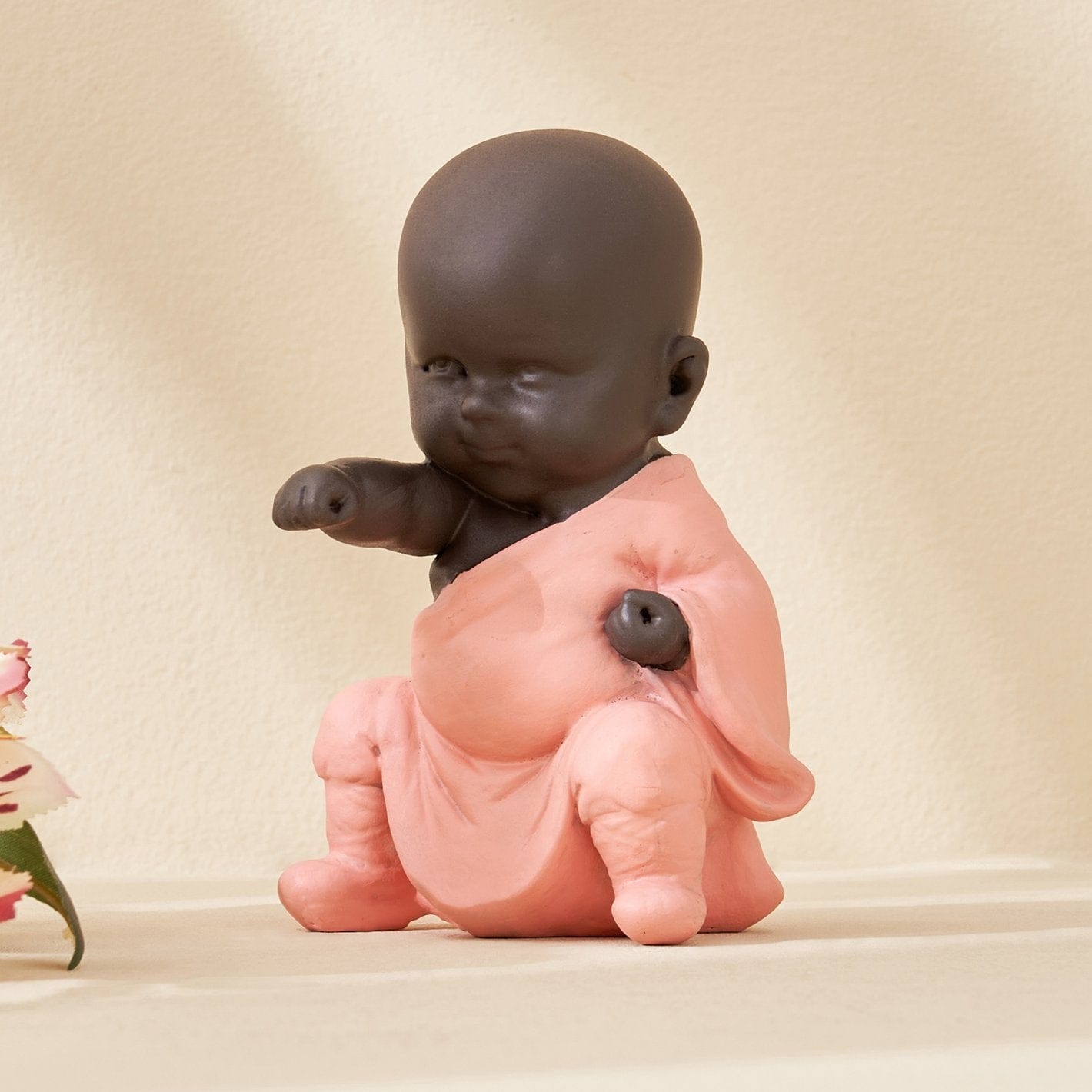 Stylish and current, this Buddha statue is beautifully made from handcrafted resin. An excellent choice for spiritual and decorative gifting, gracefully decorating your table, shelf or altar. Serene Presence: Each monk embodies a different pose, radiating calmness and adding a serene aura to your surroundings. Refined Design: Made from high- polyresin, these figurines feature a smooth black finish for their skin and soft pink robes, creating a harmonious and aesthetically pleasing contrast. Compact and Versatile: Their small size makes them Ideal Gift: A wonderful present for those who appreciate spiritual decor, meditation, or simply charming and one-of-a-kind home accents. Enhances Any Space: Perfect for living rooms, bedrooms, meditation corners, or even as office decor to foster a tranquil environment. Durable Craftsmanship: Built to last, these polyresin statues are resistant to wear and tear, ensuring long- enjoyment. Perfect for adding a stylish accent to your living space.