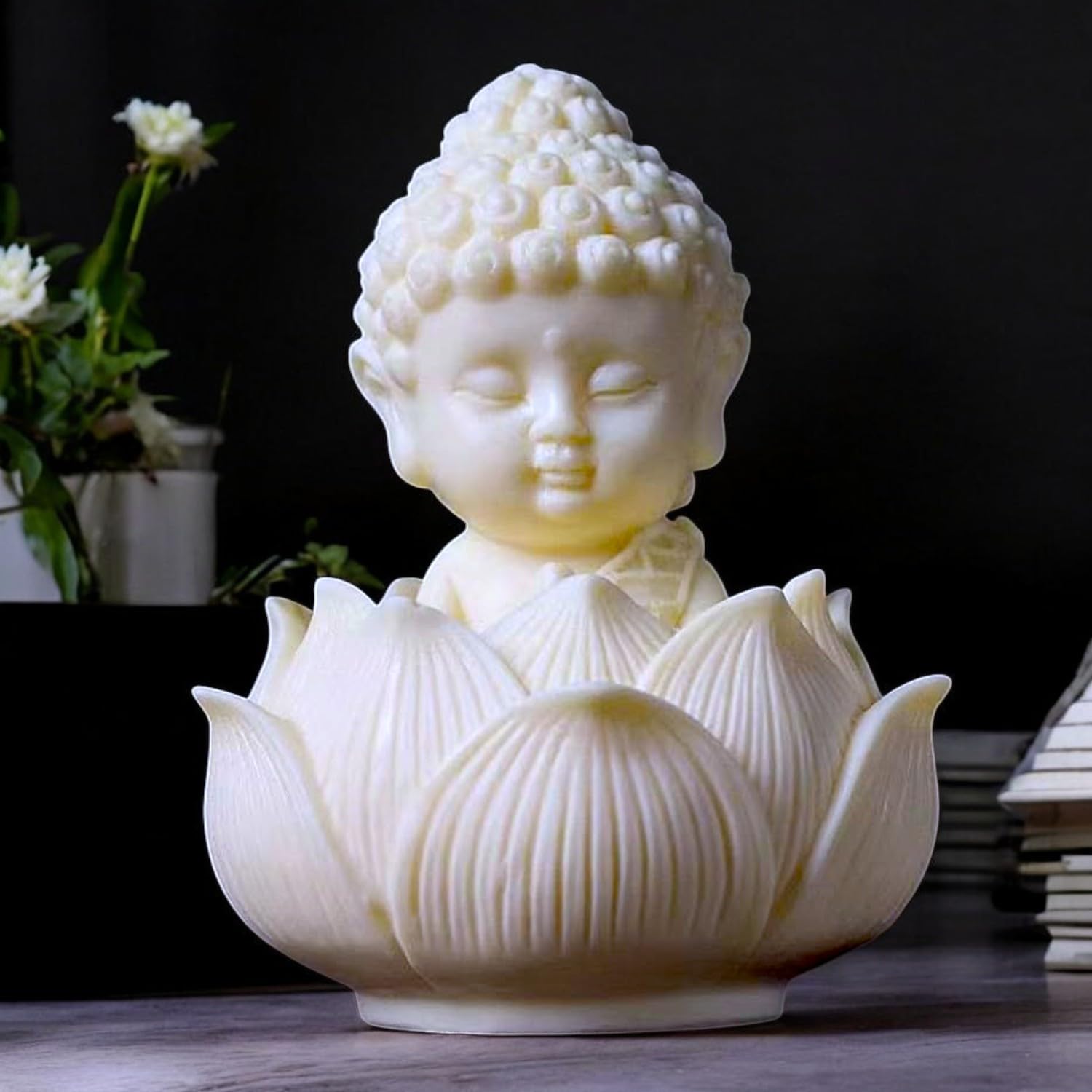 Chic and sacred, this Buddha statue is exquisitely crafted from premium resin. A lovely gift for holidays, birthdays or spiritual moments, complementing your living space, study or prayer area. Emblem of Peace and Purity: The serene Buddha meditative on a lotus flower represents enlightenment, purity of mind, and the blossoming of true self amidst challenges. High-Quality Resin-Crafted Craftsmanship: Meticulously sculpted from high- durable resin-crafted with a smooth, ivory- finish that highlights every detailed detail of the Buddha and the lotus petals. Compact and Versatile Size: Perfectly designed for your car dashboard, office desk, bedside table, meditation corner, or any small space needing a touch of calm and spiritual elegance. Radiates Positive Vibrations: The presence of Buddha is believed to bring peace, harmony, and positive energy to its surroundings, fostering a sense of tranquility and well- Thoughtful Spiritual Gifting: An ideal and profoundly meaningful gift for spiritual occasions, housewarmings, birthdays, or for anyone seeking peace, enlightenment, or a emblem of their faith. Perfect for adding a stylish accent to your living space.