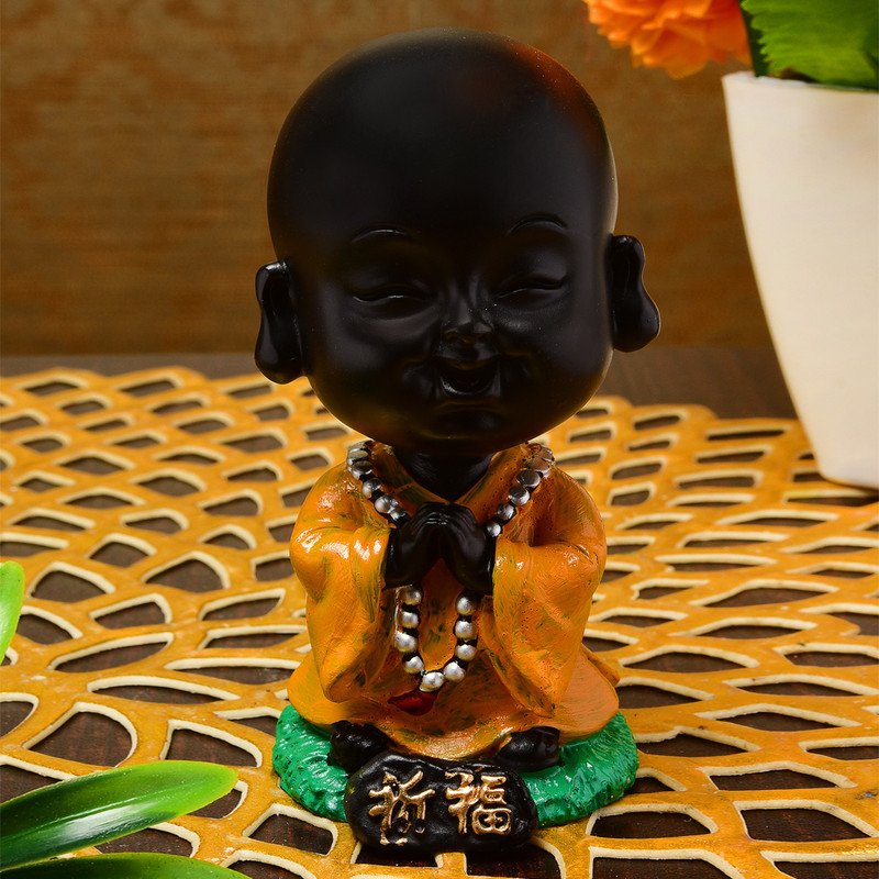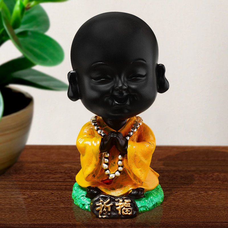 Graceful and spiritual, this Buddha statue is expertly crafted from resin-crafted. A meaningful gift for diwali or special occasions, enhancing your office desk, bookshelf or meditation area. Serene Praying Little Buddha Monk: This delightful resin-crafted figurine depicts a young Lord Buddha or monk in a serene prayer (Namaste) pose, radiating innocence and profound calm. Striking Black and Yellow Design: Features a smooth black body contrasted by a vibrant yellow robe with golden accents and a white mala bead necklace, creating a visually harmonious and striking presence. Emblem of Peace and Mindfulness: The tranquil expression and prayerful posture inspire introspection, encouraging moments of quiet reflection and fostering a sense of inner peace. High-Quality Durable Resin-Crafted Craftsmanship: Made from durable, high- polyresin, ensuring the detailed details and vibrant colors are perfectly preserved for lasting enjoyment and durability. Versatile Home and Office Decor: Heart warming Spiritual Gift: An exceptionally thoughtful and inspiring gift for housewarmings, birthdays, festivals, or for anyone who appreciates symbols of peace, spirituality, and wisdom. Makes an eye-catching addition to your office or home.