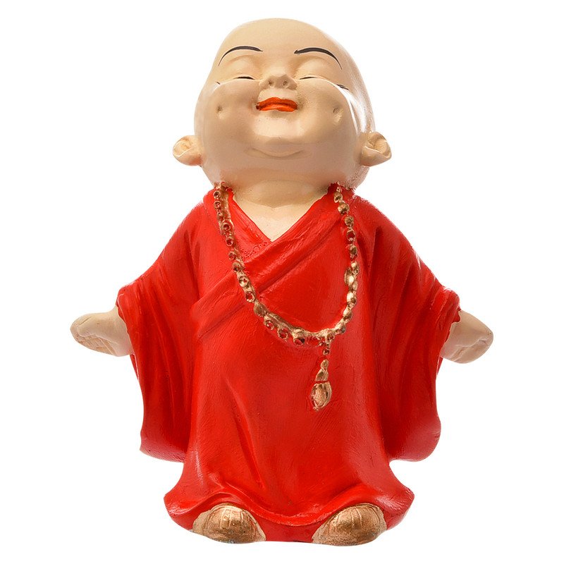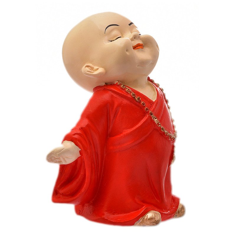 Elegant and divine, this Buddha statue is skillfully crafted from durable resin. Makes a charming present for loved ones, adding elegance to your hallway, bedroom or meditation corner. Beaming with Pure Joy: This enchanting resin-crafted figurine captures a young Buddhist monk in a state of pure bliss, with a radiant, wide- smile and eyes softly closed, radiating infectious happiness and contentment. Vibrant Red Robe: Dressed in a striking red robe, a colour often associated with excellent fortune, energy, and auspiciousness, adding a powerful visual pop and positive symbolism to your home decor. Emblem of Prosperity and Cheerfulness: The Laughing Buddha (Hotei) is universally revered for attracting wealth, excellent fortune, and an abundance of joy, making this figurine a powerful emblem for a thriving and happy life. Refined Golden Necklace: Adorned with a delicate golden beaded necklace, adding a subtle touch of elegance and enhancing the figurine' charming and prosperous aura. High-Quality Durable Resin-Crafted Craftsmanship: Meticulously sculpted from durable, high- polyresin, ensuring detailed details, a smooth finish, and lasting vibrant colors for enduring beauty. Heartfelt and Memorable Gift: An exceptionally thoughtful and uplifting gift for housewarmings, birthdays, graduations, business openings, or for anyone you wish to bless with happiness and excellent fortune. Enhances the ambiance of living rooms, bedrooms, and offices.