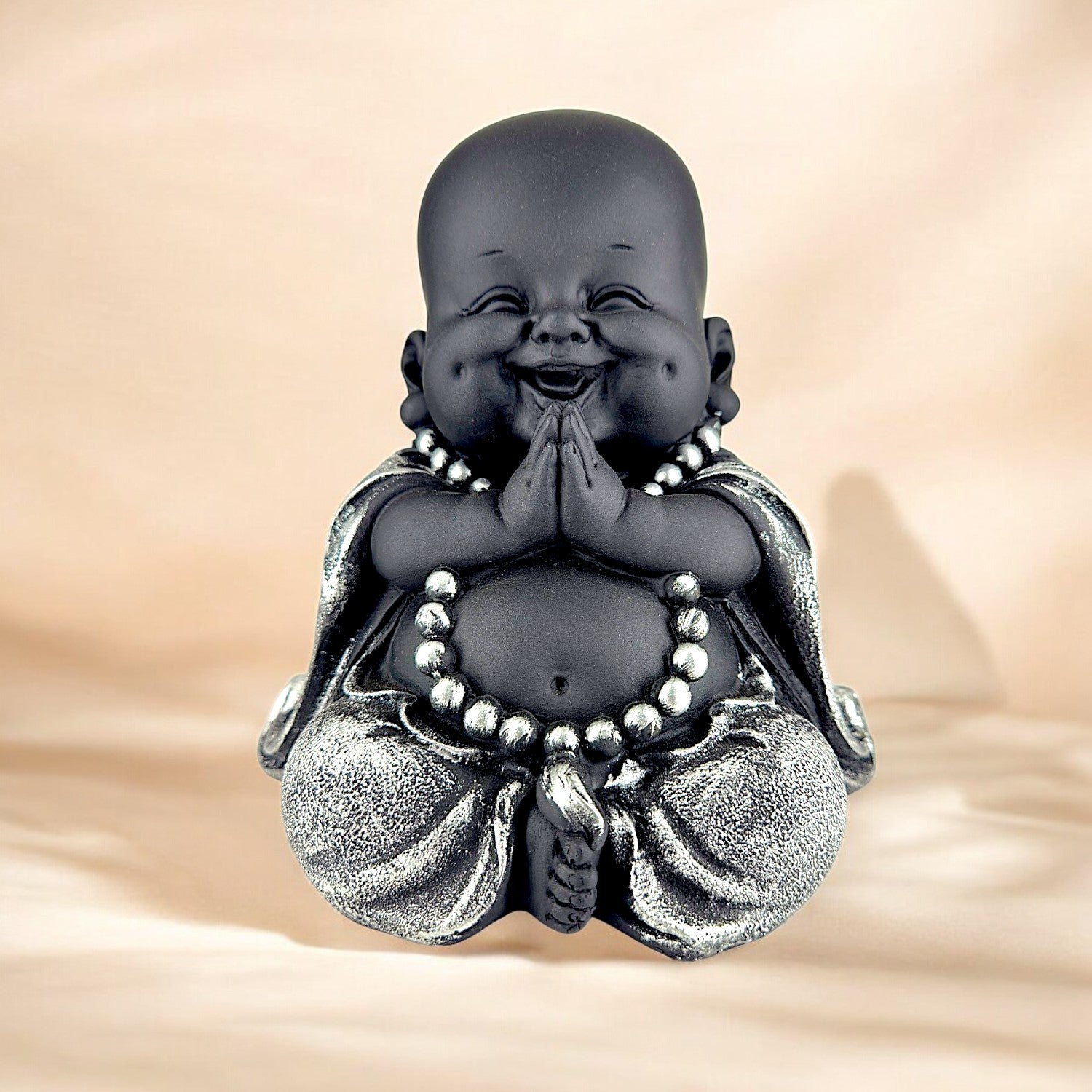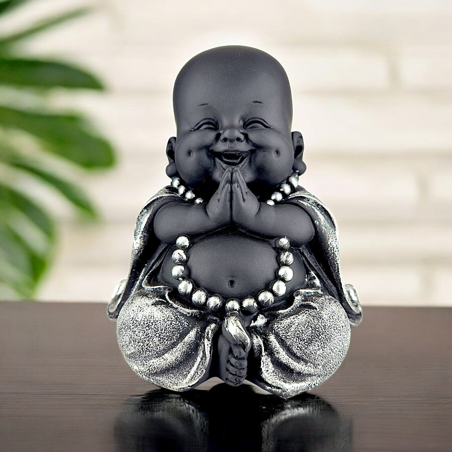 Elegant and divine, this Buddha statue is meticulously crafted from premium materials. A wonderful housewarming or festival gift, decorating your dining room, entryway or home temple. Emblem of Joy and Happiness: This delightful Black Little Buddha figurine embodies pure joy, contentment, and a cheerful spirit. Attracts Prosperity: Believed to bring wealth, excellent fortune, and success into your life and surroundings. One-Of-A-Kind and Striking Design: The black colour adds a contemporary and sophisticated touch to this classic emblem of happiness. Serene Presence: Radiates a calming and serene aura, promoting relaxation and mindfulness. Versatile Decoration: Perfectly sized for desks, shelves, living rooms, meditation spaces, or as a one-of-a-kind accent in any room. Durable Craftsmanship: Made from durable material with a smooth finish, ensuring long- beauty and enjoyment. Thoughtful Gift Idea: A heart warming and fortunate present for housewarmings, birthdays, or any special occasion. Enhances the ambiance of living rooms, bedrooms, and offices.