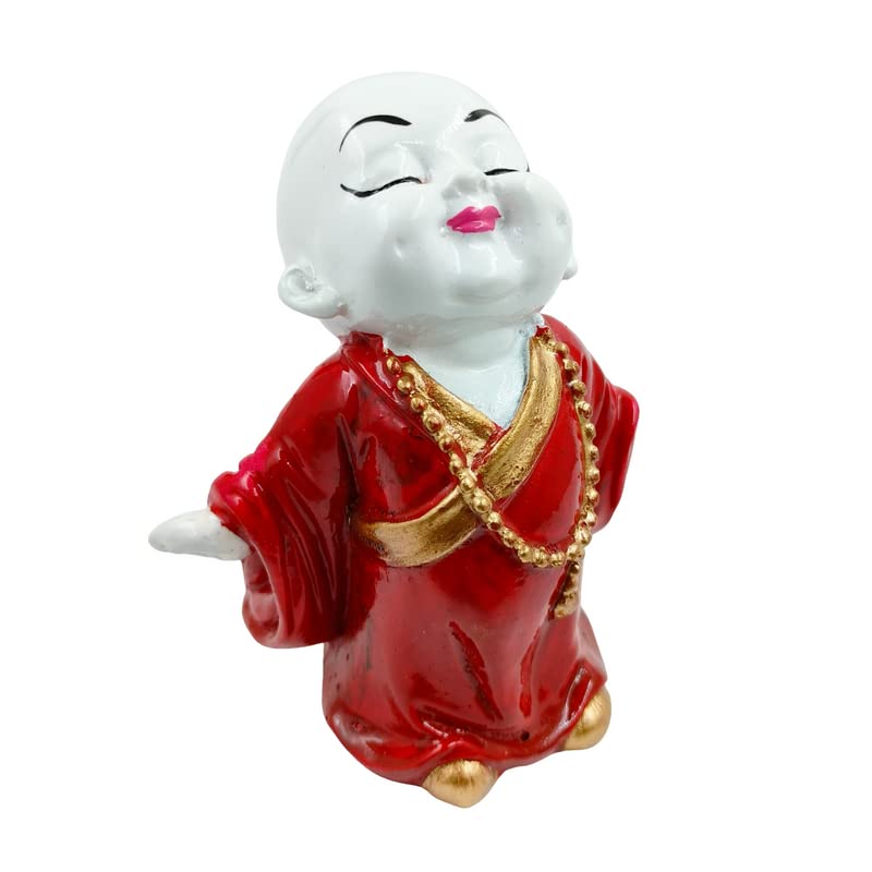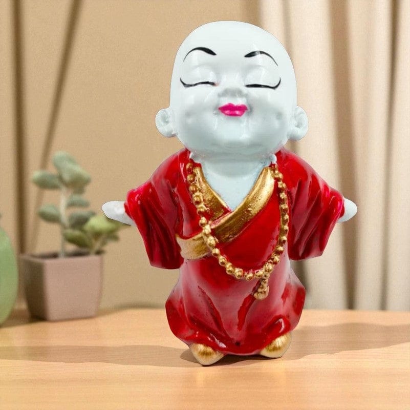 Luxurious Charming Standing Red Baby Monk Buddha Figure | Resin Playful Display Piece for Joy, Good Fortune & Welcoming Home Decoration – Stylish Accent