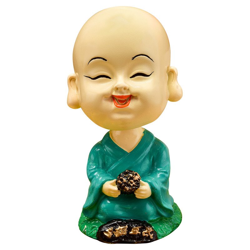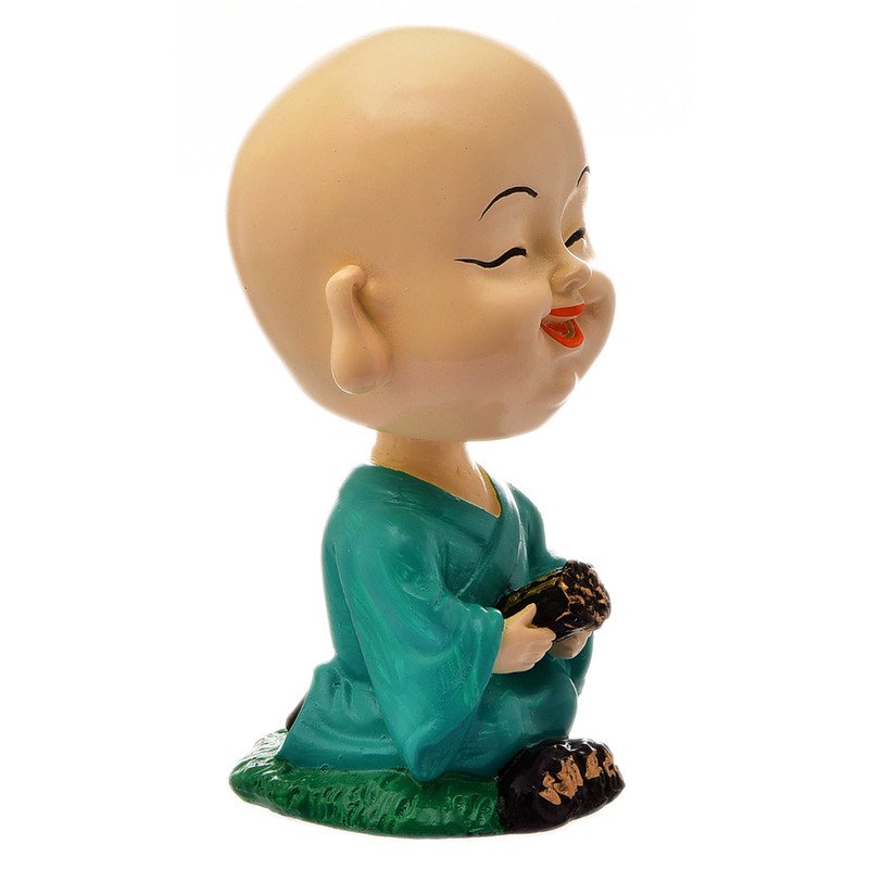 Lavish and spiritual, this Buddha statue is skillfully crafted from premium materials. Makes a charming present for loved ones, adding elegance to your hallway, bedroom or meditation corner. Showcase your style with this luxurious handmade ployresin. Bring a dash of delightful charm and endless smiles to your space with this adorable bobblehead- young monk figure! This adorable statue features a cheerful, bald- monk with rosy cheeks and a wide, infectious grin, symbolizing happiness and contentment. Dressed in serene green robes, he holds a small, significant item (possibly a emblem of wealth or excellent fortune), ready to share blessings. With its spring- head, this figure gently sways and bobs, adding a playful and dynamic touch to your car dashboard, office desk, or home shelf. It' more than just a home decor piece; it' a constant reminder to find joy in everyday moments and embrace positivity. An excellent gift choice for anyone who appreciates distinctive home decor, a touch of whimsy, or a emblem of excellent fortune and happiness. Let this cheerful bobblehead monk brighten your day and fill your surroundings with positive vibes! Suitable for display on shelves, mantels, or desks.