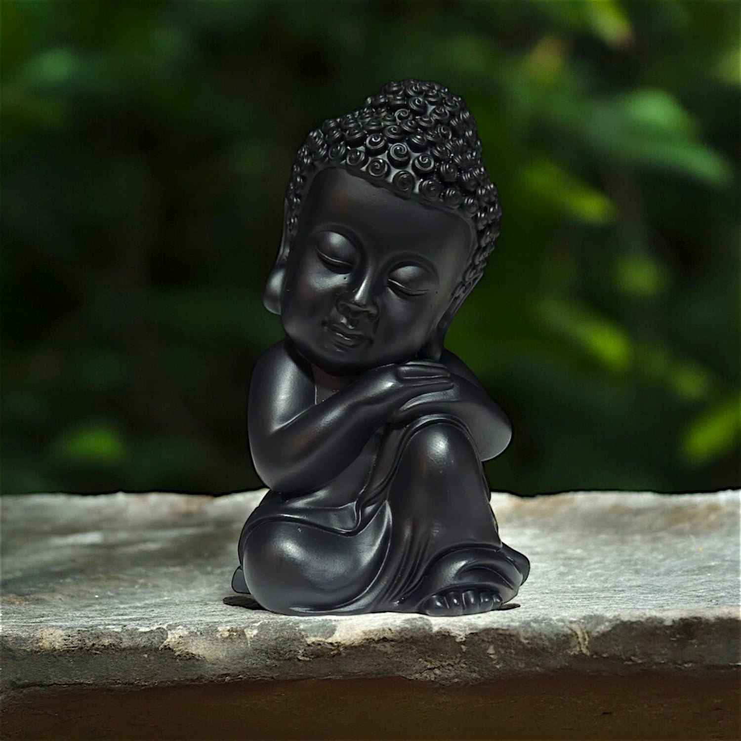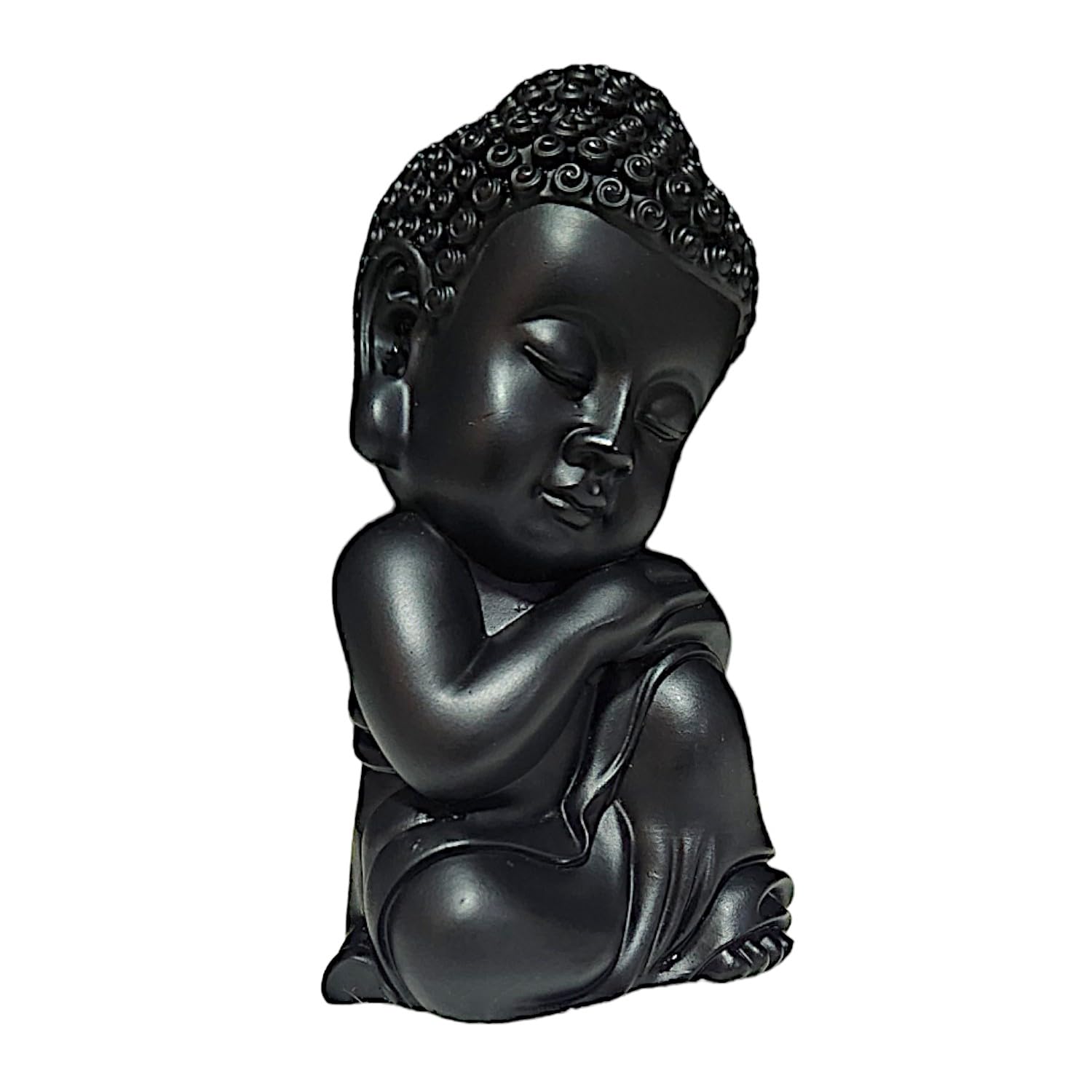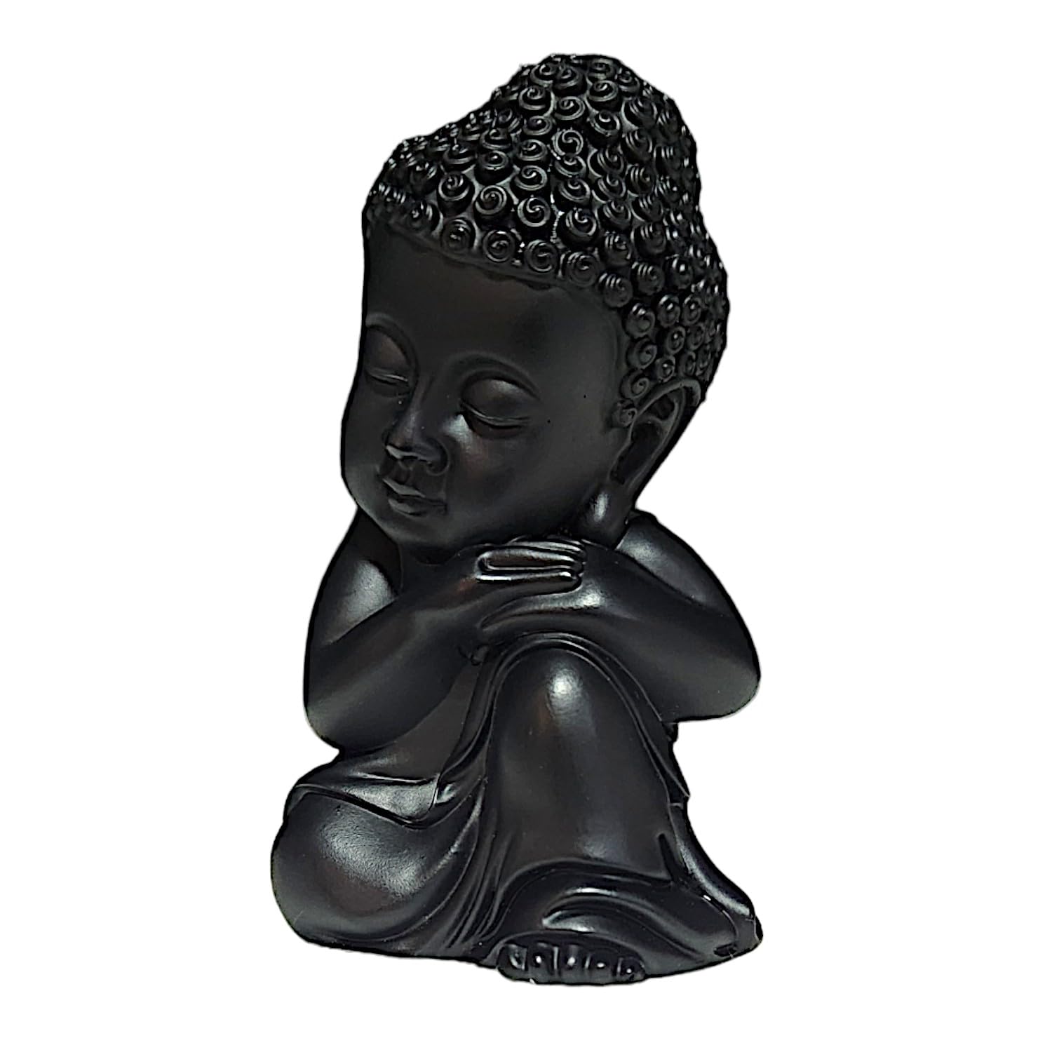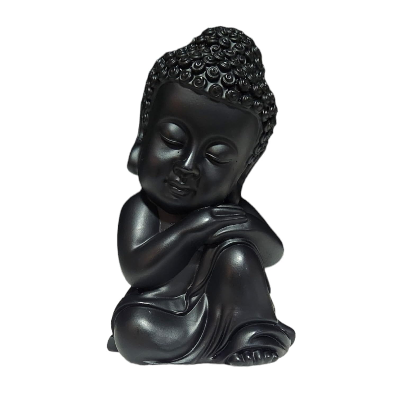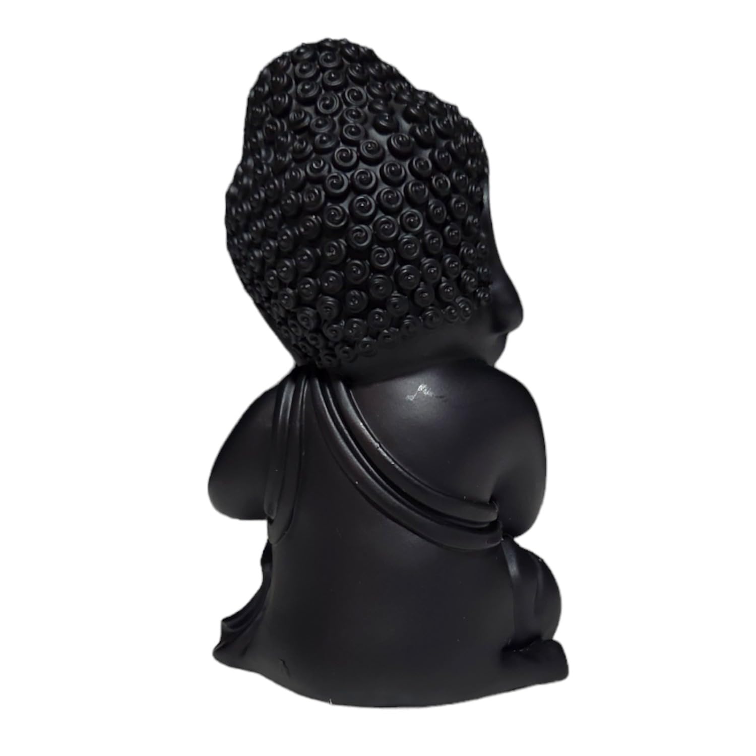 Lavish and premium, this Buddha statue is beautifully made from handcrafted resin. An excellent choice for spiritual and decorative gifting, gracefully decorating your table, shelf or altar. Showcase your style with this luxurious serene little. Emblem of Inner Peace and Reflection: The contemplative pose of this Little Buddha Monk encourages introspection, mindfulness, and a serene state of being. Sleek Matte Black Finish: Presented in an graceful matte black, offering a contemporary and calming aesthetic that effortlessly blends with diverse home decor styles. Versatile Calming Home Decor: Perfect for creating a serene sanctuary in mindfulness areas, yoga studios, living rooms, bedside tables, or office desks. Meaningful Spiritual Gift: An ideal present for those practicing mindfulness, mindfulness, or anyone desiring to enhance their home with spiritual tranquility. various nooks and corners, bringing peace without overwhelming the space. Promotes a Zen Atmosphere: Designed to inspire a sense of calm and balance, encouraging a more mindful living environment. Suitable for display on shelves, mantels, or desks.