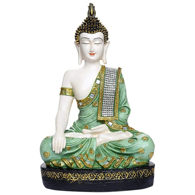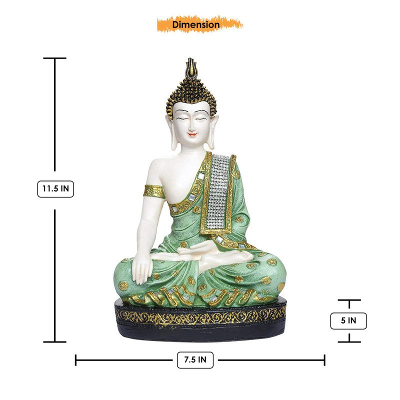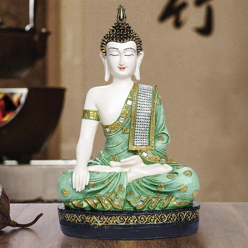 Modern Handmade Ployresin Light Green And Golden Colour Sitting Lord Buddha Figurine Display Piece Home Decor/Office Home Decor/Spiritual Gift – Premium Home Decor