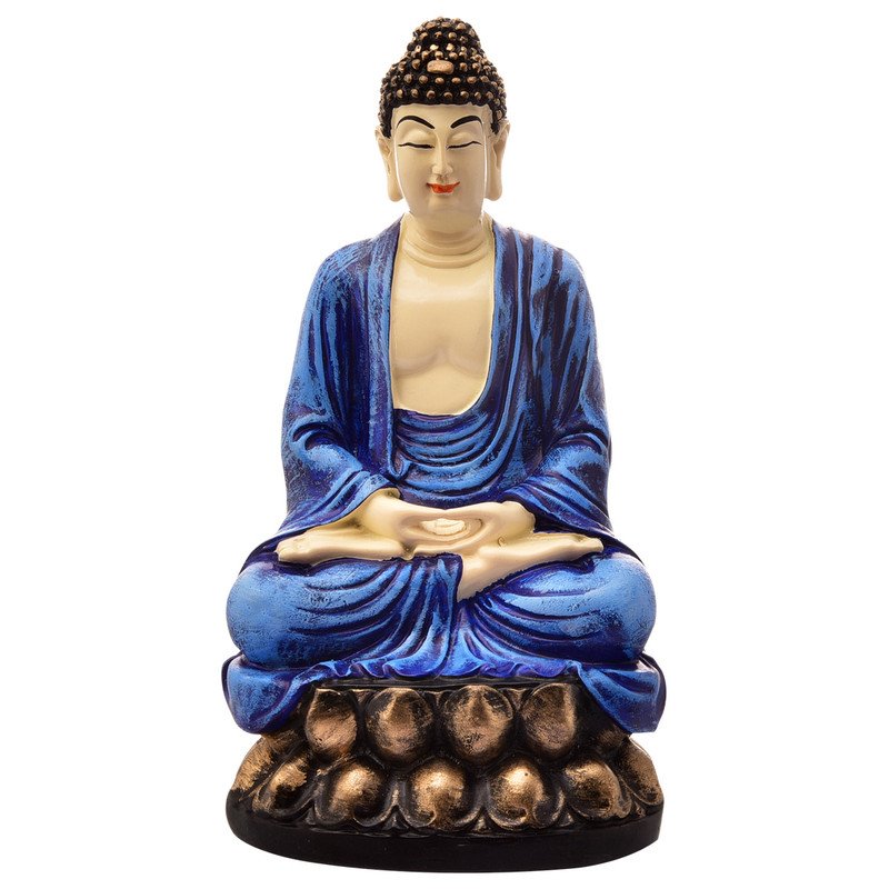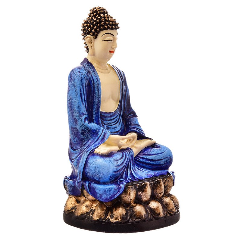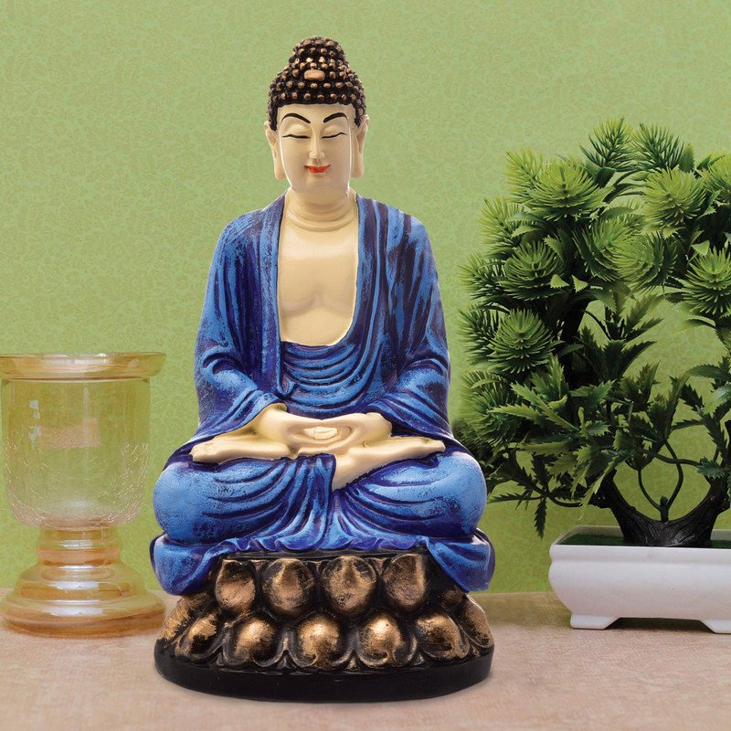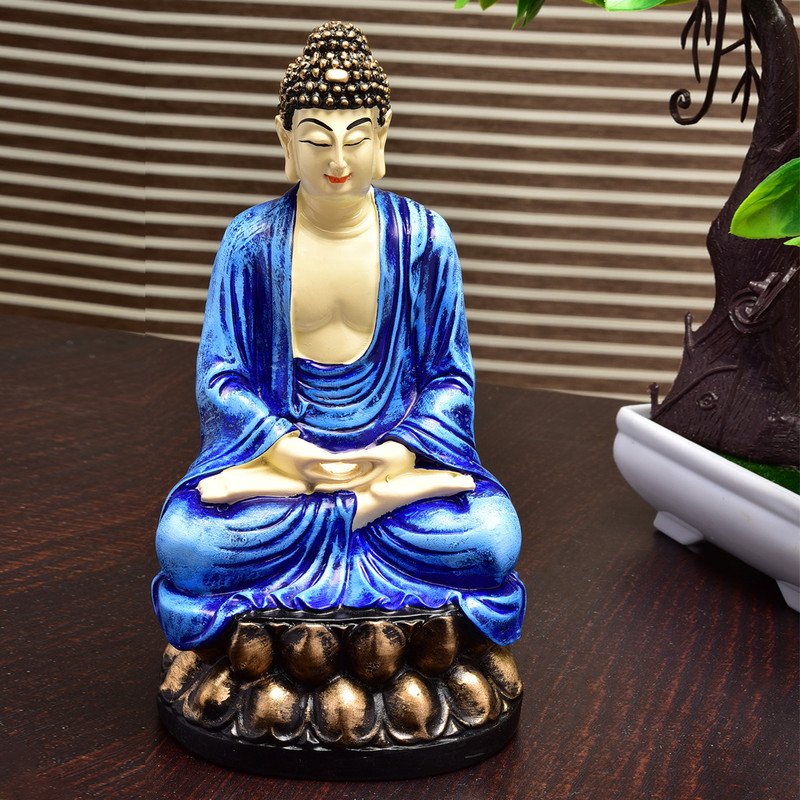 Modern Handmade Ployresin Lord Buddha Meditating Figure Sitting On Lotus Centerpiece Home Home Decor/Office Decoration/Spiritual Gift, Blue – Home Decor Accent