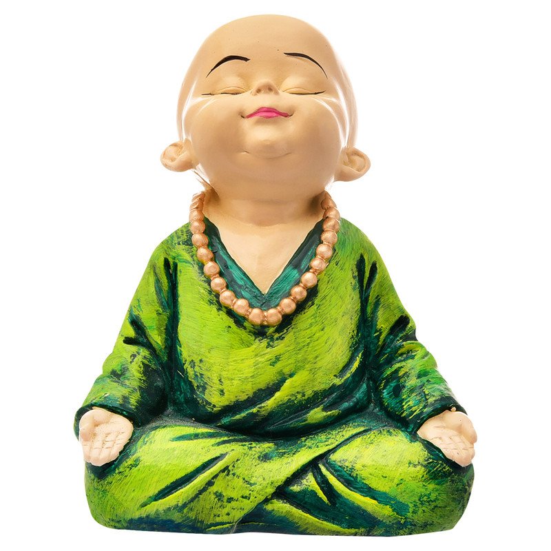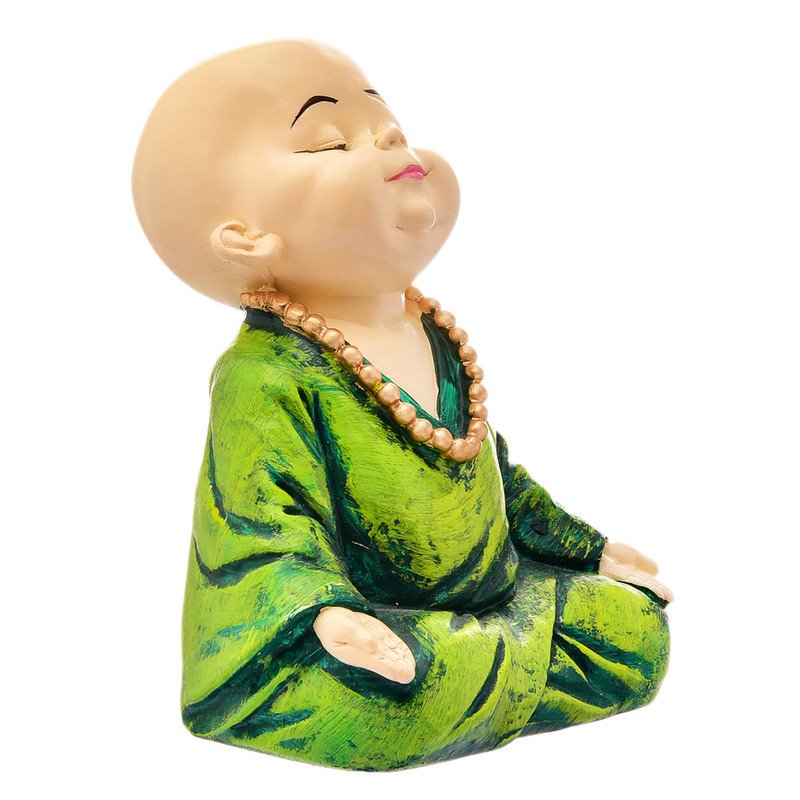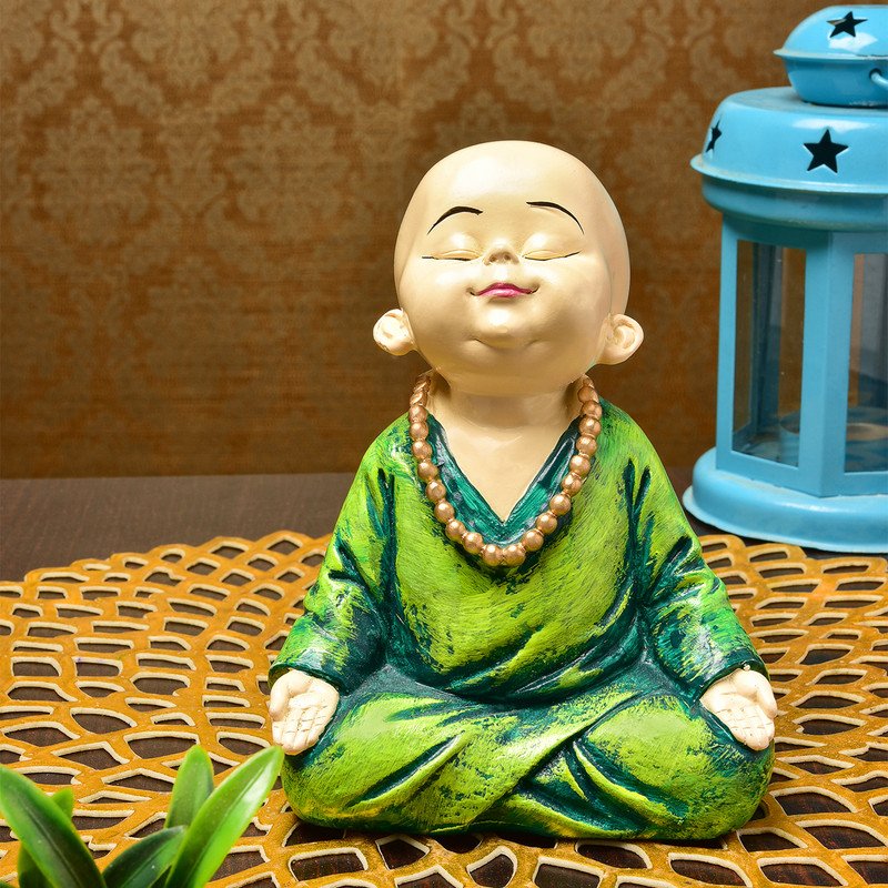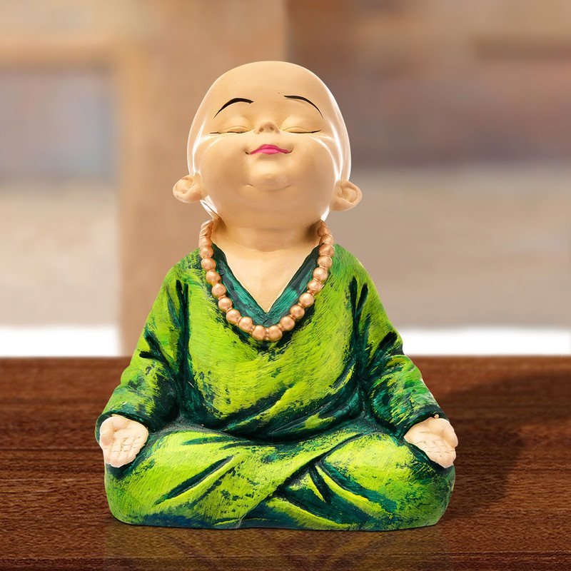 Contemporary and divine, this Buddha statue is beautifully made from premium materials. Perfect for gifting on birthdays, anniversaries or festivals, fitting effortlessly into your pooja room, living area or workspace. Discover tranquility and joy with this charming meditative Buddha statue. This adorable figure, reminiscent of a serene young monk or a cheerful Buddha, is meticulously crafted to bring a sense of peace and positive energy to any environment. Perfect for your living room, bedroom, office desk, or mindfulness space, this statue serves as a stunning reminder of mindfulness and inner calm. It' also an ideal gift for loved ones on housewarmings, birthdays, or any occasion where you wish to share blessings of happiness and serenity. Its compact size makes it versatile for various decoration styles, adding a touch of spiritual elegance. Embrace peace and positivity with this delightful Buddha figure. A wonderful gift for loved ones and collectors.