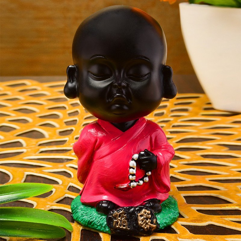 Contemporary and divine, this Buddha statue is meticulously crafted from resin-made. Perfect for festive gifting and celebrations, bringing beauty to your home temple, office desk or study. Serene Dark Little Monk with Prayer Beads: This distinctive resin figure features a young Buddhist monk with a distinctive dark tone, holding or wearing prayer beads (mala), exuding peace and tranquility. Contemporary and Spiritual Home Accent: The dark color palette adds a contemporary touch to this spiritual figure, making it a distinctive addition to your home home decor. Adorable and Thoughtful Design: The endearing features of the little monk combined with the spiritual significance of the prayer beads create a captivating and meaningful piece. Distinctive Gift of Peace and Reflection: This dark- monk figure with prayer beads makes a thoughtful gift for those who appreciate Buddhist spirituality, mindfulness, or distinctive and serene home accents. Detailed Resin Craftsmanship with a Distinctive Tone: Crafted from quality resin with careful attention to detail, capturing the serene posture and the prayer beads held by the young monk in a striking dark finish. Versatile Spiritual Home Decor with a Contemporary Edge: Its compact size allows for easy placement on shelves, desks, altars, or mindfulness corners, enhancing the spiritual ambiance with a contemporary flair. A Emblem of Inner Peace and Mindfulness: The presence of the prayer beads and the monk' serene expression serve as a gentle reminder to cultivate inner peace, practice mindfulness, and engage in spiritual reflection. A wonderful gift for loved ones and collectors.