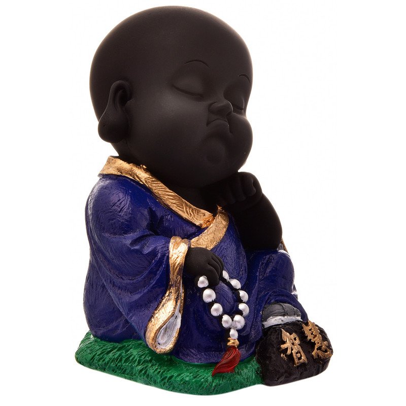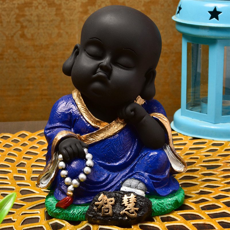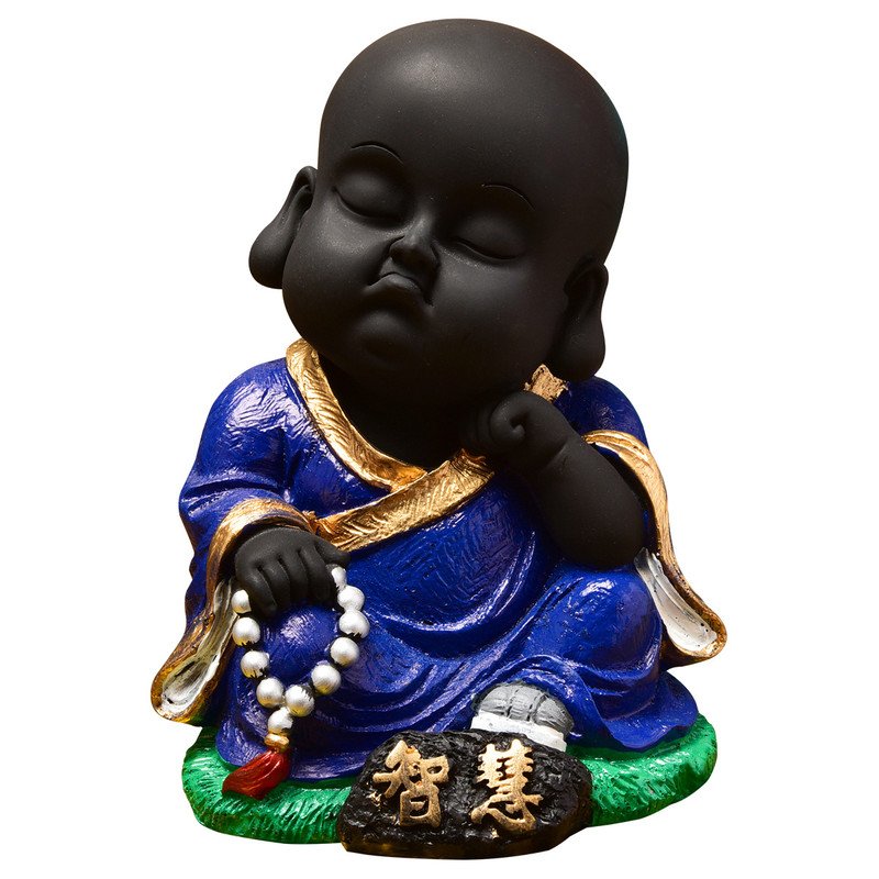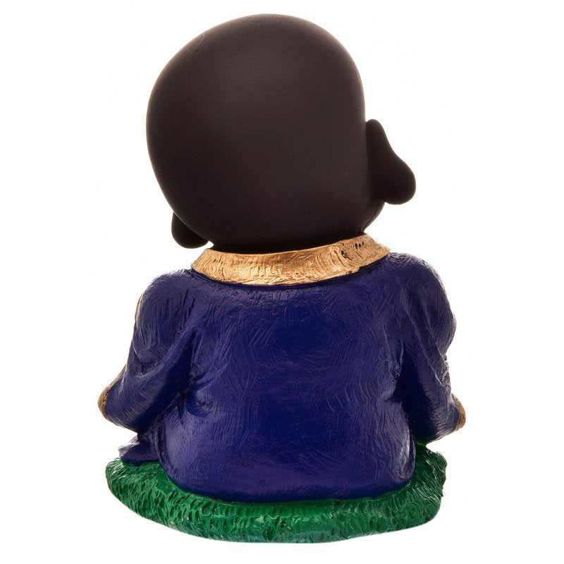Modern and sacred, this Buddha statue is meticulously crafted from resin-made. A wonderful housewarming or festival gift, decorating your dining room, entryway or home temple. Serene Little Buddha Monk: This delightful resin statue depicts a young Lord Buddha or monk in a serene, meditative pose, radiating innocence and calm. Distinctive Black and Blue Design: Features a smooth black body contrasted by a rich, blue robe with golden accents and a bead necklace, creating a visually appealing and harmonious presence. Emblem of Peace and Wisdom: The tranquil expression and meditative posture inspire mindfulness and bring a sense of spiritual harmony to your home or office. Luxury Quality Resin Craftsmanship: Made from durable, high- polyresin, ensuring the detailed details are perfectly preserved for lasting enjoyment. Versatile Home and Office Decor: Heart warming Spiritual Gift: An exceptionally thoughtful and inspiring gift for housewarmings, birthdays, or for anyone who appreciates symbols of peace, spirituality, and inner wisdom. A wonderful gift for loved ones and collectors.