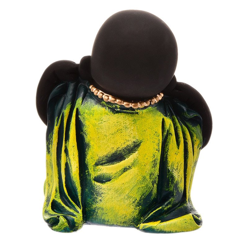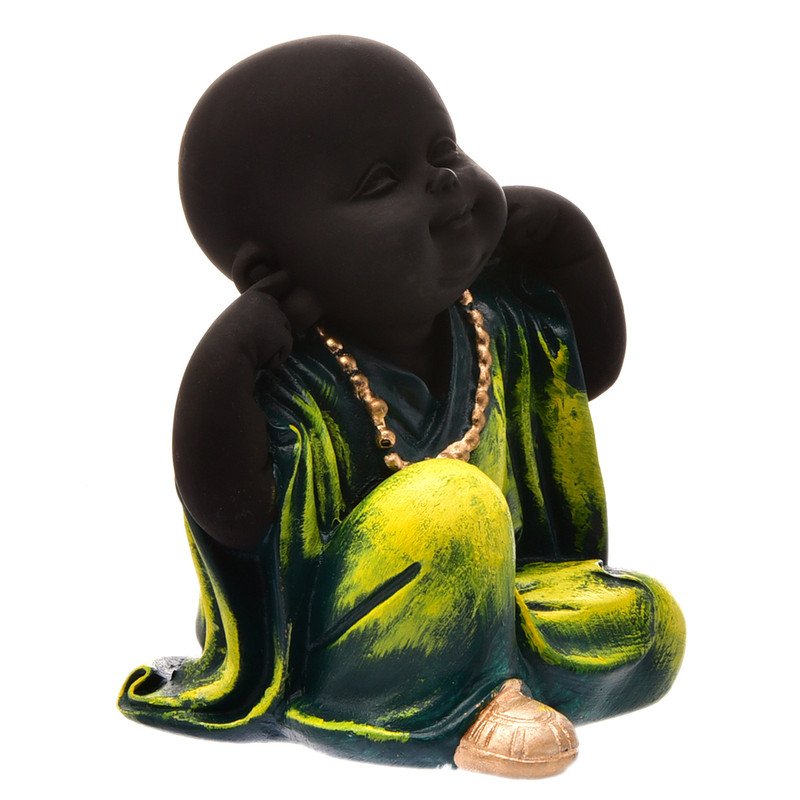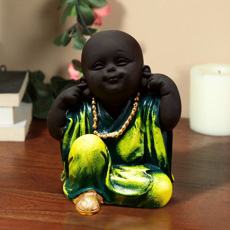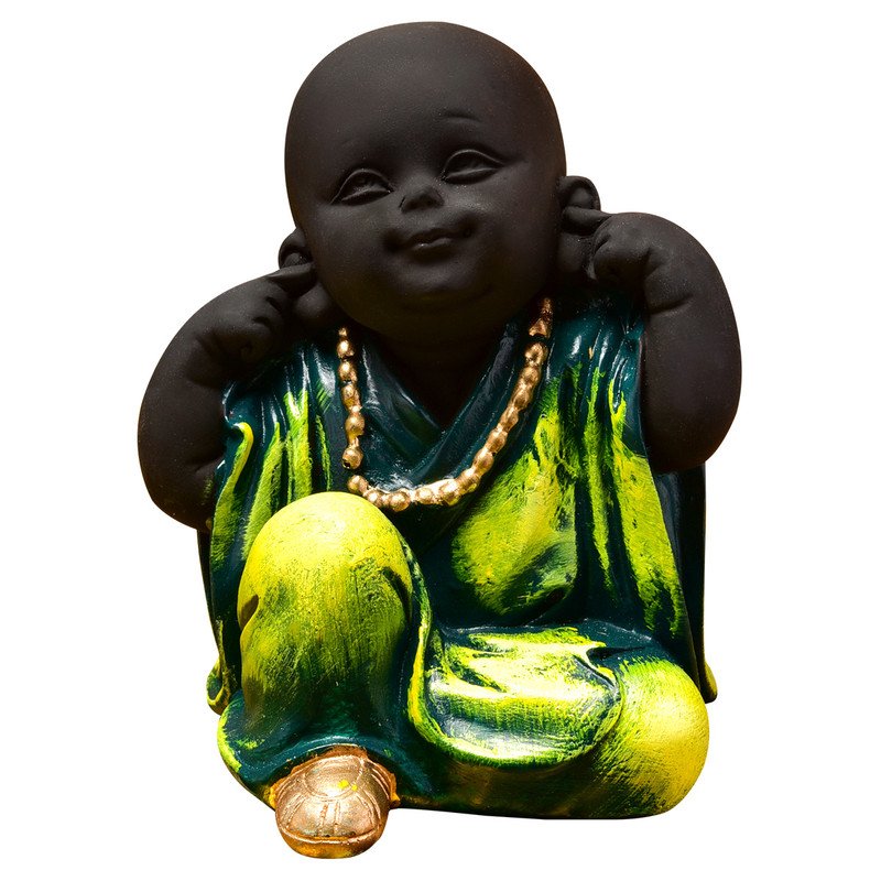 Stylish Handmade Ployresin Green Colour Sitting And Putting Fingers In Ears Lord Buddha Idol Decor Piece Home Decoration/Office Decor/Spiritual Gift