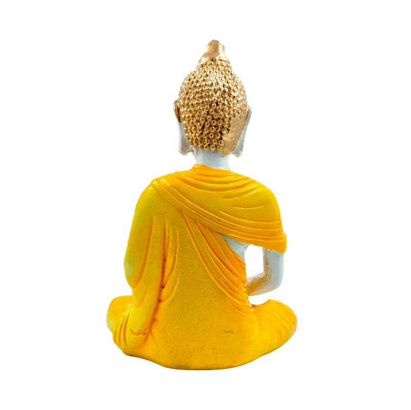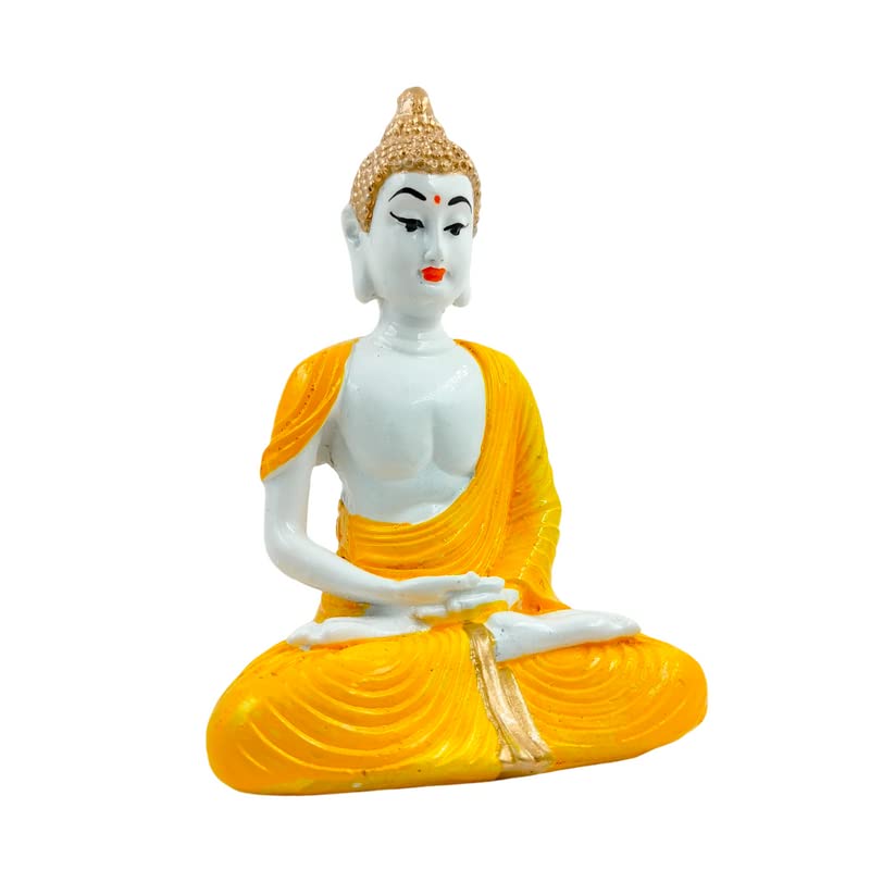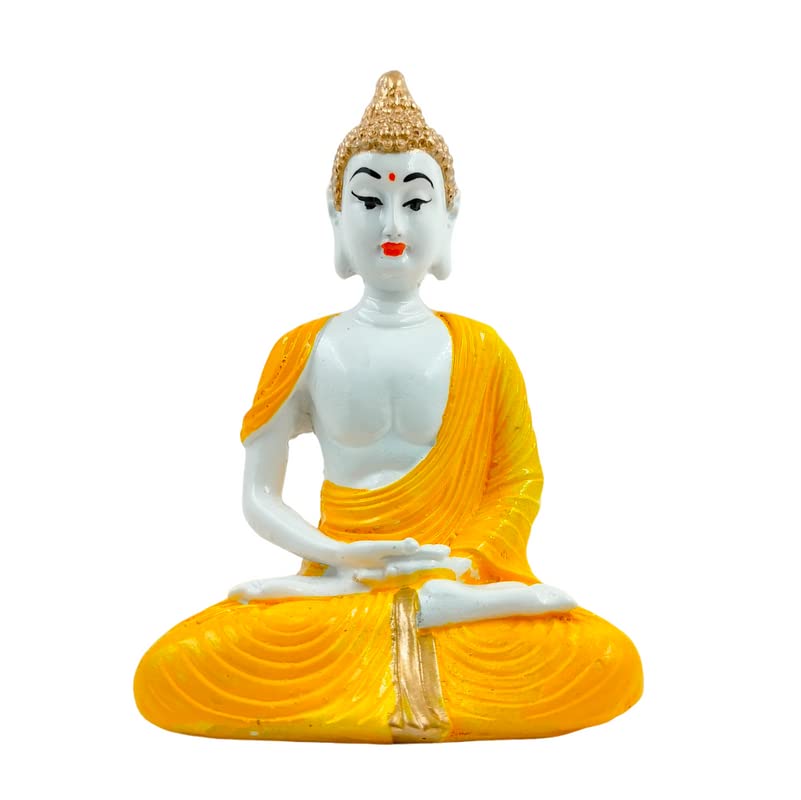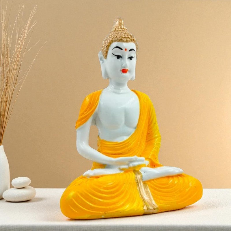 Stylish Serene White & Yellow Meditating Buddha Statue | Resin Zen Figure for Inner Peace, Enlightenment & Tranquil Home Home Decor – Stylish Accent