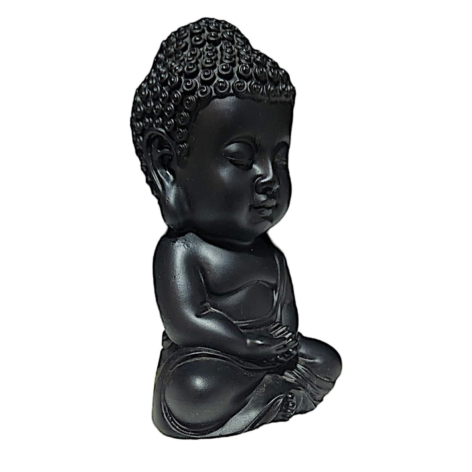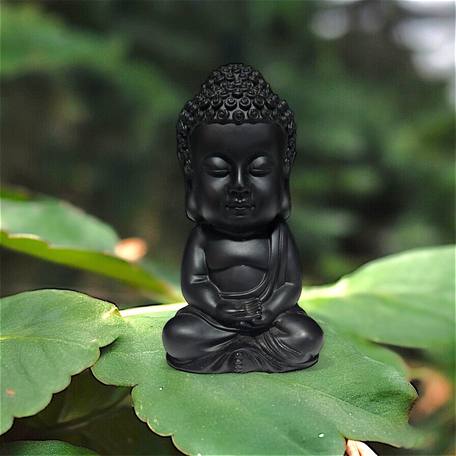 Stylish Zen Little Buddha Monk Figure – Matte Black Resin-Crafted for Calm, Meditation & Home Sanctuary – Artful Decor Piece