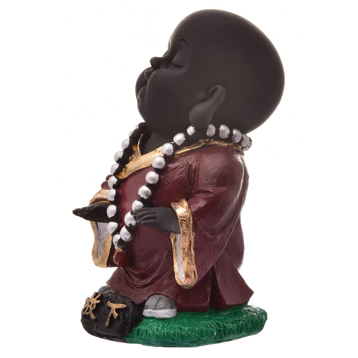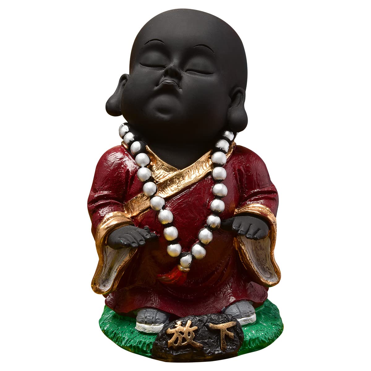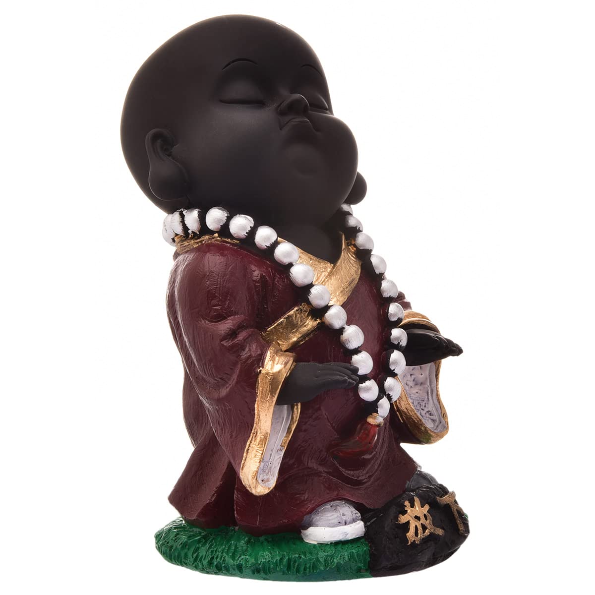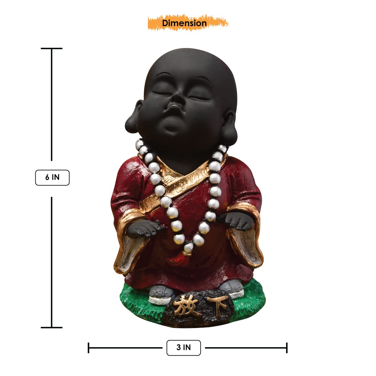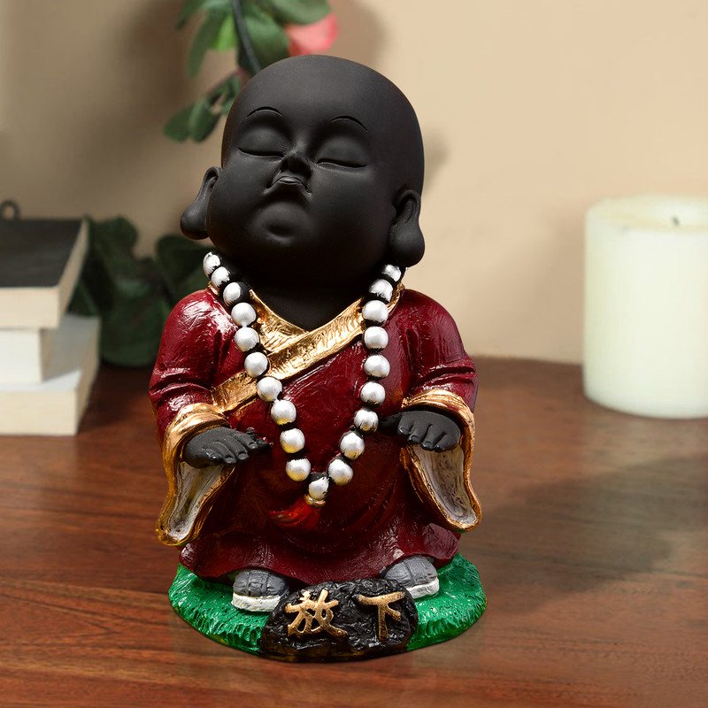 Everlasting and spiritual, this Buddha statue is exquisitely crafted from premium resin. A lovely gift for holidays, birthdays or spiritual moments, complementing your living space, study or prayer area. Serene Meditative Little Buddha Monk: This delightful resin statue depicts a young Lord Buddha or monk in a serene, meditative pose with eyes closed, radiating innocence and profound calm. Distinctive Black and Maroon Design: Features a smooth black body contrasted by a rich maroon/ robe with golden trim, and a white mala bead necklace, creating a visually harmonious and striking presence. Emblem of Peace and Mindfulness: The tranquil expression and meditative posture inspire introspection, encouraging moments of quiet reflection and fostering a sense of inner peace. Luxury Quality Resin Craftsmanship: Made from durable, high- polyresin, ensuring the detailed details and vibrant colors are perfectly preserved for lasting enjoyment and durability. Versatile Home and Office Decoration: Heart warming Spiritual Gift: An exceptionally thoughtful and inspiring gift for housewarmings, birthdays, festivals, or for anyone who appreciates symbols of peace, spirituality, and wisdom. Your Daily Dose of Calm: A gentle reminder to pause, breathe, and find a moment of peace amidst your busy day. The Perfect Corner Companion: Fits exquisitely on your bedside table, work desk, or reading nook, adding a touch of serenity where you need it most. Bring charm and elegance to your décor.