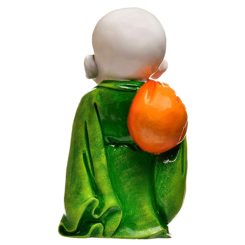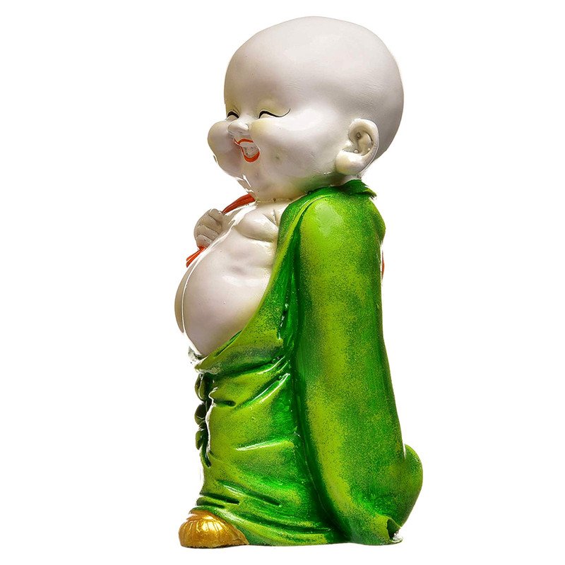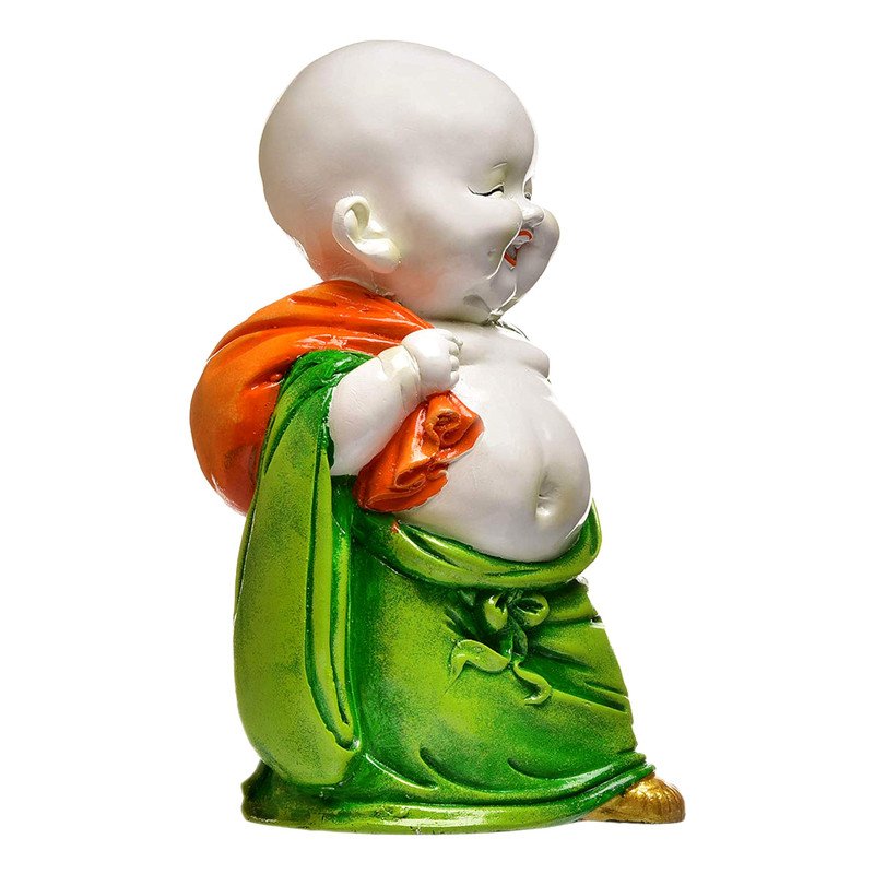 Everlasting and spiritual, this Buddha statue is skillfully crafted from durable resin. Makes a charming present for loved ones, adding elegance to your hallway, bedroom or meditation corner. Charming Laughing Little Buddha: This delightful resin statue depicts a young Lord Buddha or monk with a hearty, open- laugh, radiating immense joy, contentment, and innocence. Vibrant Green Robe and Details: Features a serene white/ body adorned with a lively green robe and holding a small red object (possibly a money bag), creating a visually appealing and positive presence. Emblem of Prosperity and Happiness: Traditionally believed to attract wealth, excellent fortune, and merriment, this figure is a perfect reminder to embrace positivity and cherish life' blessings. Luxury Quality Resin Craftsmanship: Made from durable, high- polyresin, ensuring the detailed details and vibrant colors are perfectly preserved for lasting enjoyment and durability. Versatile Home and Office Decoration: Heart warming Spiritual Gift: An exceptionally thoughtful and inspiring gift for housewarmings, birthdays, festivals, or for anyone who appreciates symbols of peace, happiness, and innocence. Stable and Compact Size: Designed to sit securely on shelves, tables, or ledges, making it a perfect fit for various decoration styles without taking up much space. Bring charm and elegance to your décor.