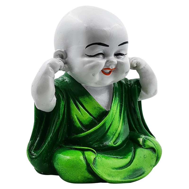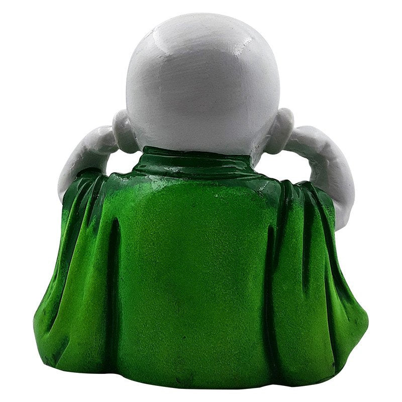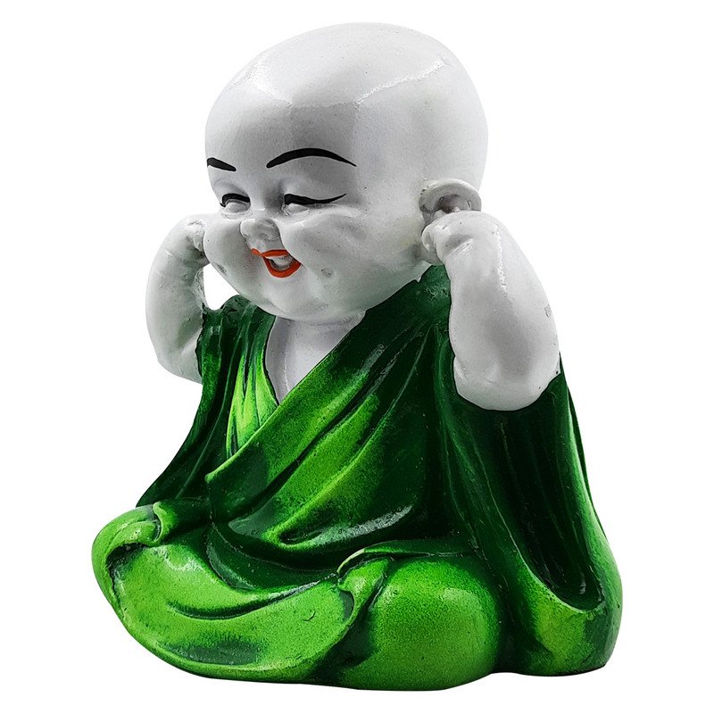 Timeless and sacred, this Buddha statue is exquisitely crafted from premium resin. A lovely gift for holidays, birthdays or spiritual moments, complementing your living space, study or prayer area. Playful "Hear No Evil" Posture: This delightful resin statue depicts a young Buddhist monk with hands playfully covering his ears, embodying the wise proverb "Hear No Evil" and serving as a gentle reminder to avoid negative influences for a serene mind. Vibrant Green Robe: Dressed in a rich, calming green robe, this figure adds a refreshing pop of colour and a sense of tranquility, exquisitely complementing its cheerful expression. Emblem of Joy and Inner Harmony: His infectious, wide- smile radiates pure happiness and contentment, encouraging a light hearted approach to life and promoting inner joy. Luxury Quality Resin Craftsmanship: Meticulously sculpted from durable, high- polyresin, ensuring detailed facial details, smooth finishes, and lasting vibrant colors for years of enjoyment. Versatile and Charming Decoration: Perfect for enhancing the ambiance of your living room, office desk, mindfulness corner, children' room, or as a distinctive accent on any shelf or tabletop, bringing smiles and serenity. Meaningful and Distinctive Gift: An exceptionally thoughtful and uplifting gift for housewarmings, birthdays, graduations, spiritual occasions, or for anyone seeking to add wisdom and positivity to their environment. Cultivates Positive Energy Flow: Allow the serene yet playful presence of this Little Monk to fill your surroundings with balance, excellent cheer, and positive vibrations, fostering a serene and uplifting atmosphere. A Touch of Zen Wisdom: Brings the timeless essence of Buddhist philosophy and mindful living directly into your contemporary space in an endearing form. Bring charm and elegance to your décor.