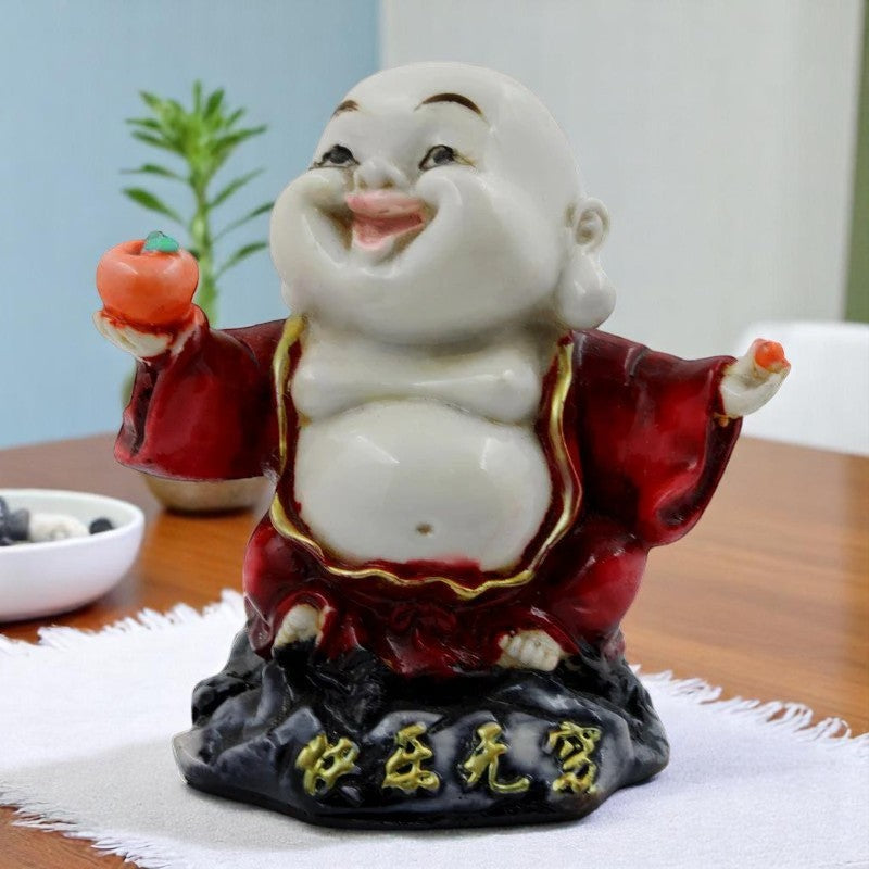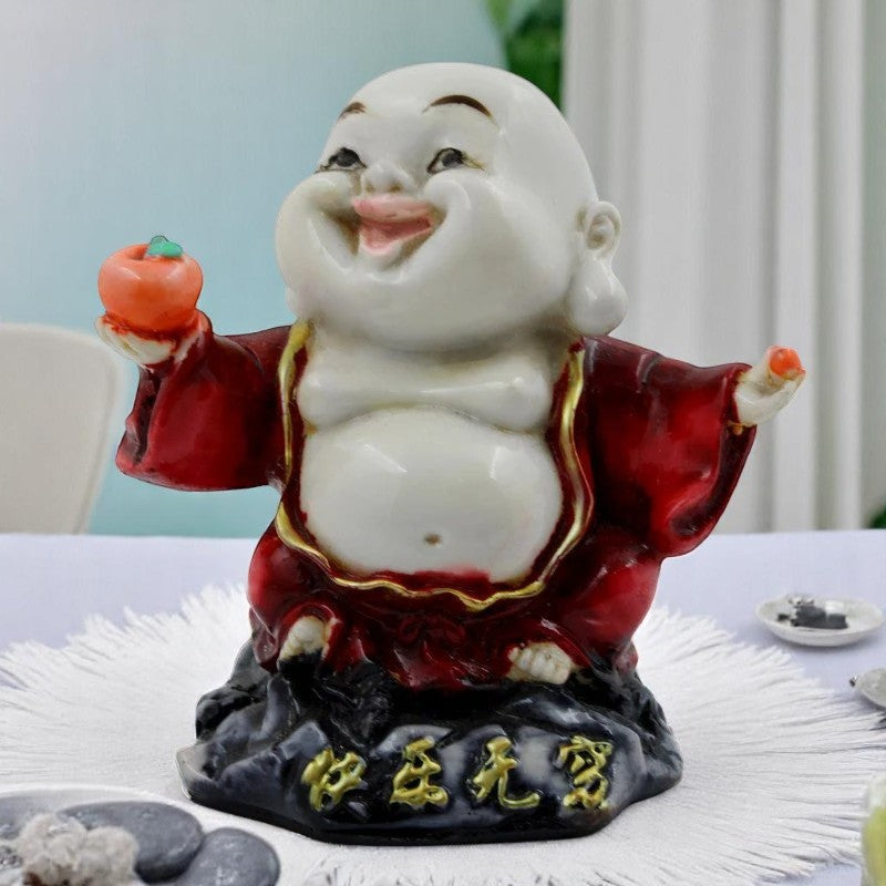 Everlasting and spiritual, this Buddha statue is meticulously crafted from resin-made. A wonderful housewarming or festival gift, decorating your dining room, entryway or home temple. Iconic Laughing Buddha with Fruit: This captivating resin statue depicts the beloved Laughing Buddha (Hotei) with an infectious, wide- smile and arms outstretched, symbolizing happiness, contentment, and the generous sharing of blessings. Emblem of Abundance and Longevity: He holds a symbolic peach or fruit in one hand, often associated with longevity, immortality, and prosperity, further amplifying the figure' benevolent energy. Vibrant Red Robe and Golden Details: Adorned in a striking red robe with graceful golden trims, this figure brings a pop of rich color and classic aesthetic to any home decor, signifying excellent fortune and celebration. Luxury Quality Resin Craftsmanship: Meticulously crafted from durable, high- polyresin, ensuring detailed facial features, garment details, and a lasting, vibrant finish. Attracts Wealth and Positive Chi: Traditionally believed to invite endless abundance, financial excellent fortune, and merriment, making it an ideal piece for homes and businesses. Versatile Home and Office Home Decor: Perfect for enhancing the ambiance of your living room, entryway, office desk, cash counter, or as a delightful accent in any space where joy and prosperity are desired. Heart warming Fortunate Gift: An exceptionally thoughtful and inspiring gift for housewarmings, birthdays, business openings, festivals, or for anyone who cherishes symbols of happiness and excellent fortune. Stable and Expressive Presence: Designed with a sturdy base for secure placement, this expressive Buddha figure is a wonderful conversation starter and a source of daily inspiration. Cultivates a Happy Environment: Let the contagious happiness and generous spirit of this Laughing Buddha fill your surroundings with optimism and positive vibrations. A Daily Reminder of Joy: His cheerful demeanor serves as a constant visual cue to appreciate the simple joys of life and to embrace happiness in every moment. Bring charm and elegance to your décor.