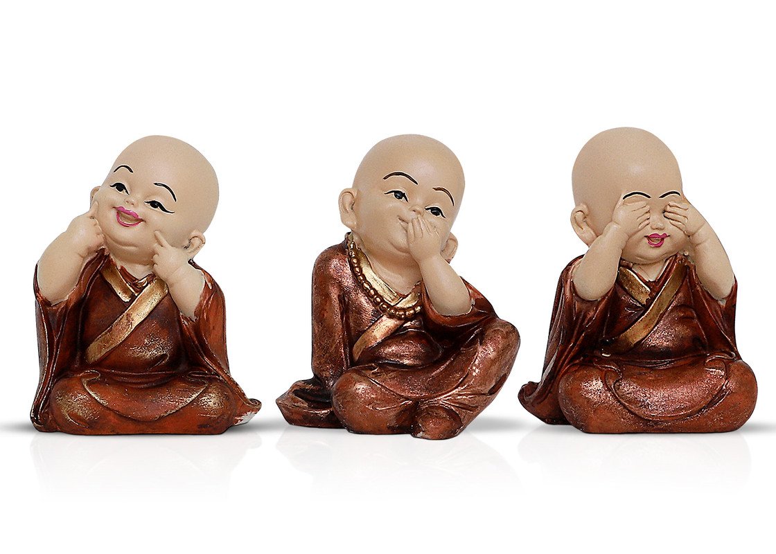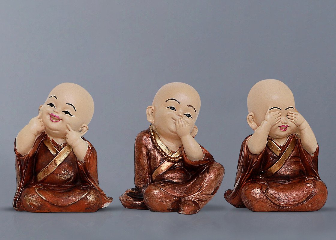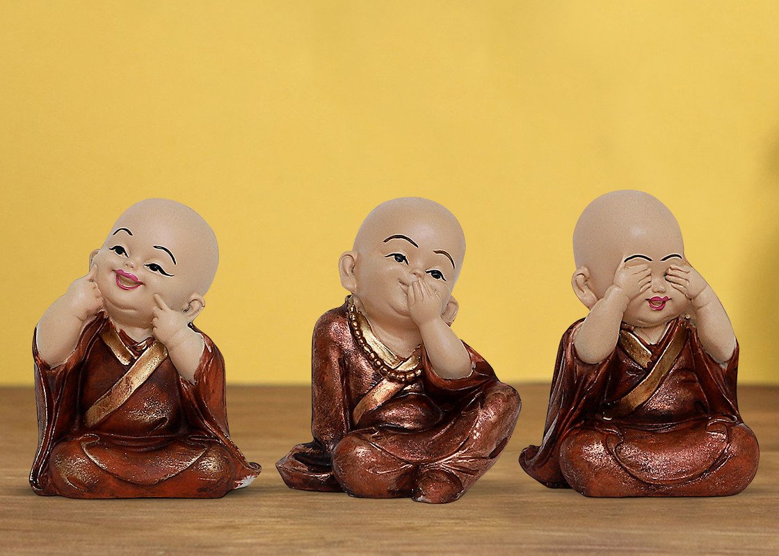 Timeless and sacred, this Buddha statue is meticulously crafted from resin-made. Perfect for festive gifting and celebrations, bringing beauty to your home temple, office desk or study. Set of Three Wise Little Monks: This delightful collection features three adorable resin figurines of little Buddha monks, each symbolizing a key aspect of mindful living: Hear No Evil, See No Evil, Speak No Evil. Warm Brown Robes: Each monk is dressed in a textured brown robe, adding a rustic yet serene aesthetic to your space. Emblem of Purity and Discretion: These iconic poses encourage us to cultivate positive thoughts, words, and actions, and to guard our minds and senses. Crafted By Hand Polyresin Quality: Made from durable polyresin, ensuring lasting charm and detailed details for years to come. Meaningful Spiritual Gift: A thoughtful and inspiring gift for housewarmings, birthdays, or for anyone seeking balance, mindfulness, and a positive environment. Charming and Expressive Faces: Each monk features a sweet, innocent expression, enhancing their appeal and symbolic message. Bring charm and elegance to your décor.