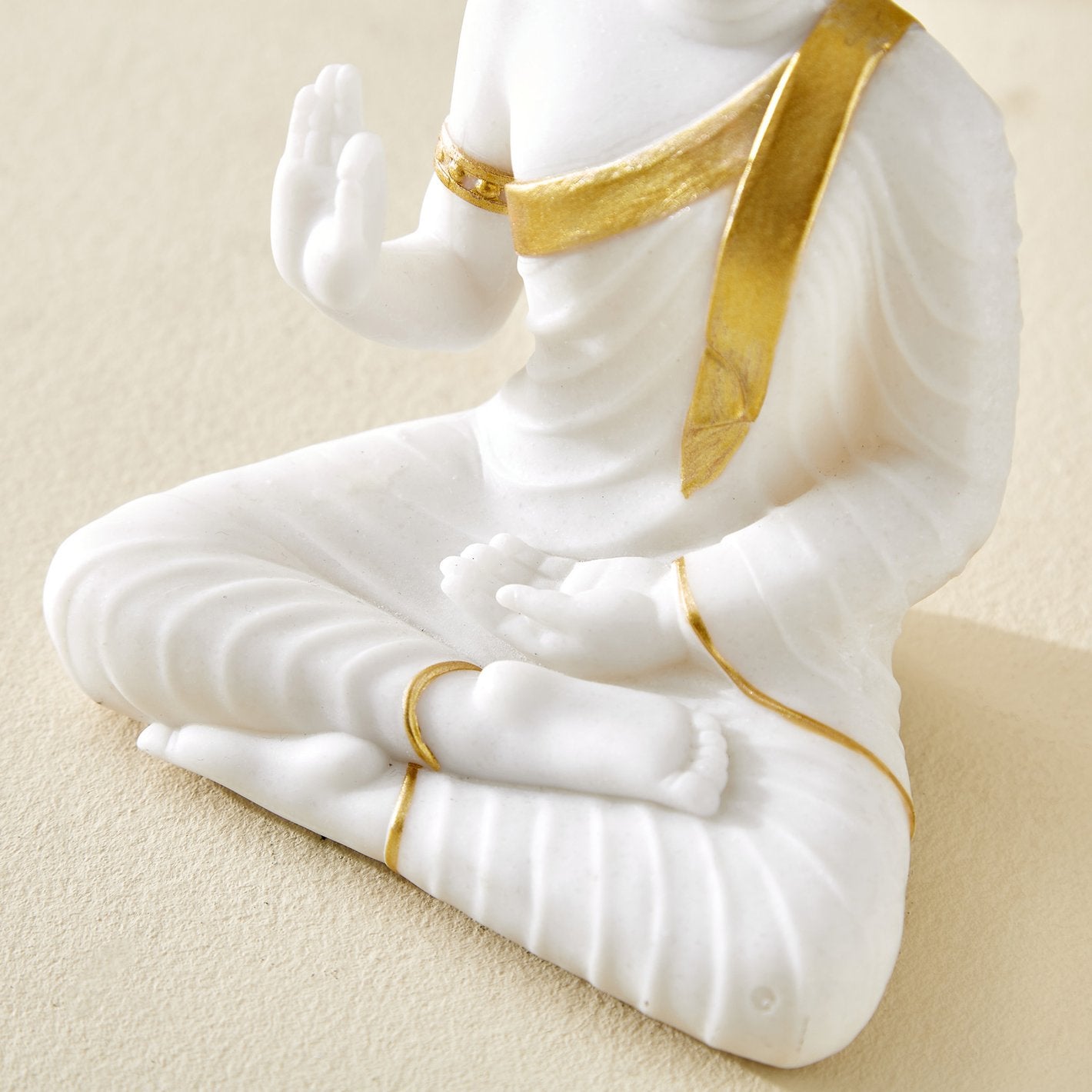 Timeless Tranquil White Buddha with Gold Detail | Resin-Crafted Figure for Calm Interiors I Resin-Crafted Figure for Contemporary Meditation Spaces – Modern Ornament