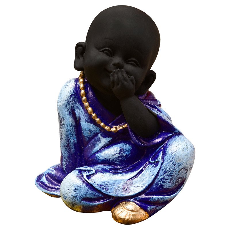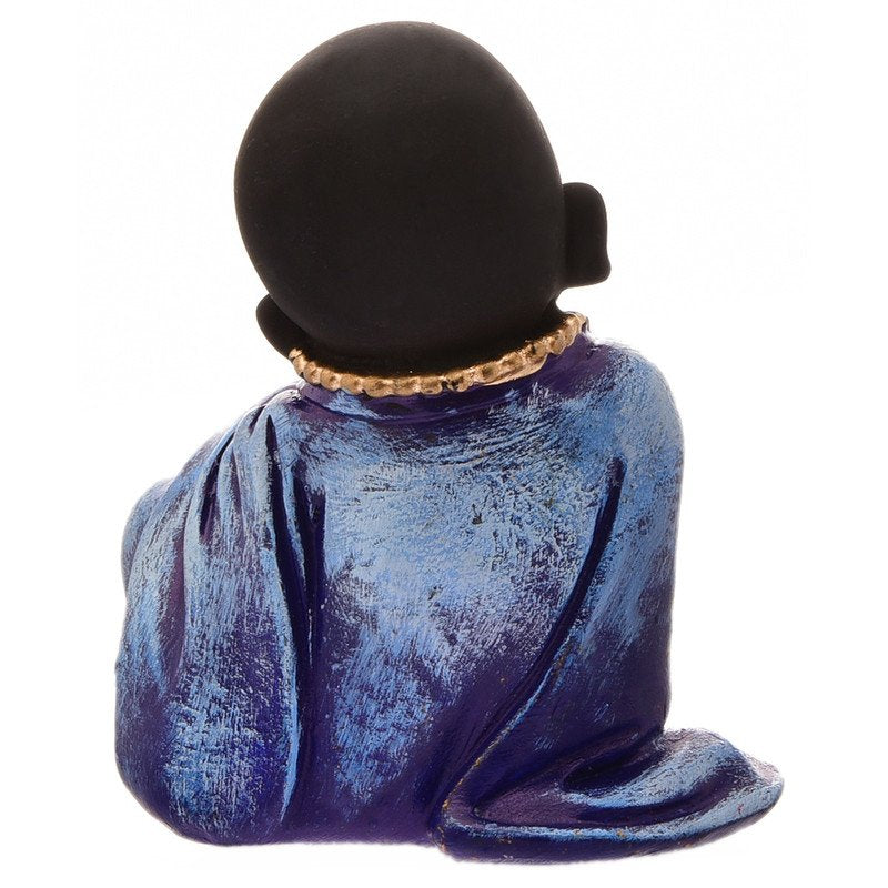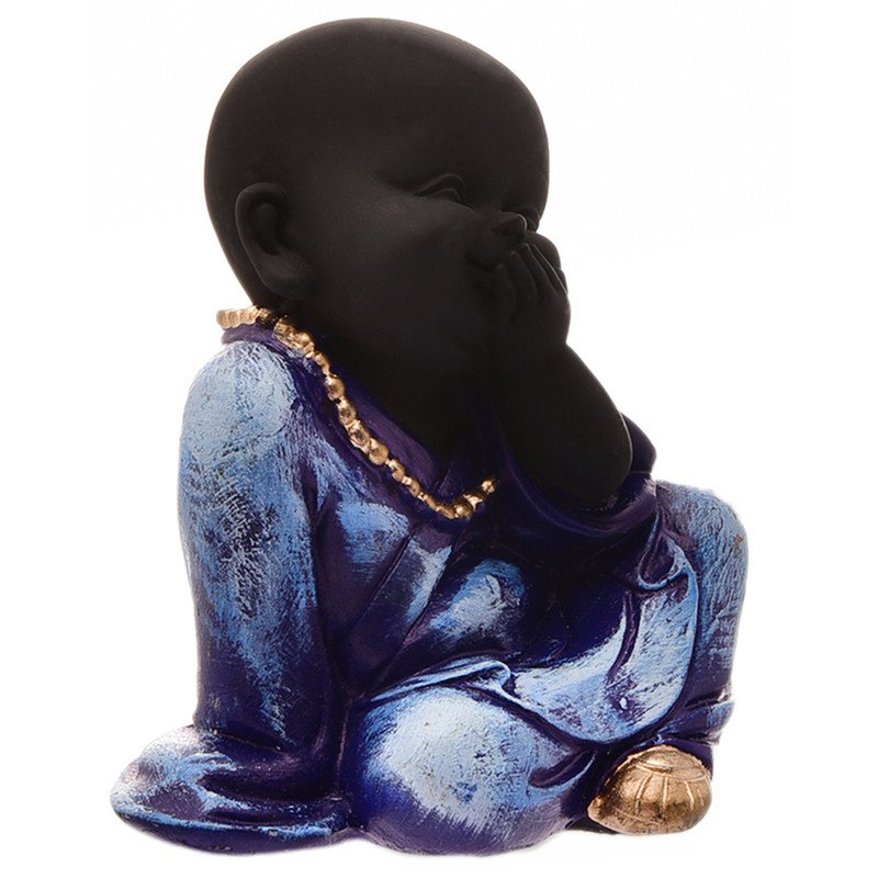 Distinctive and divine, this Buddha statue is beautifully made from handcrafted resin. Perfect for gifting on birthdays, anniversaries or festivals, fitting effortlessly into your pooja room, living area or workspace. Embody Wise Principles: This delightful little monk Buddha, in the classic "Hear No Evil" pose (covering his ears), subtly encourages mindfulness and protection from negative influences. Calming Blue and White: Features a pristine white body with a serene blue robe, complemented by subtle gold accents, creating a soothing and aesthetically pleasing contrast. Emblem of Purity and Wisdom: His innocent expression combined with the symbolic gesture represents a path to inner peace by choosing what one allows to affect their mind. Durable Resin-Crafted Craftsmanship: Meticulously sculpted from high- resin-crafted, ensuring detailed details, a smooth finish, and long- durability. Versatile Decoration Accent: Meaningful and Uplifting Gift: A perfect present for housewarmings, spiritual occasions, birthdays, or for anyone who appreciates thoughtful and symbolic home decoration. Creates a Tranquil Ambiance: Believed to attract harmony, reduce stress, and promote a sense of well- transforming your space into a serene sanctuary. Designed to complement modern and traditional interiors.