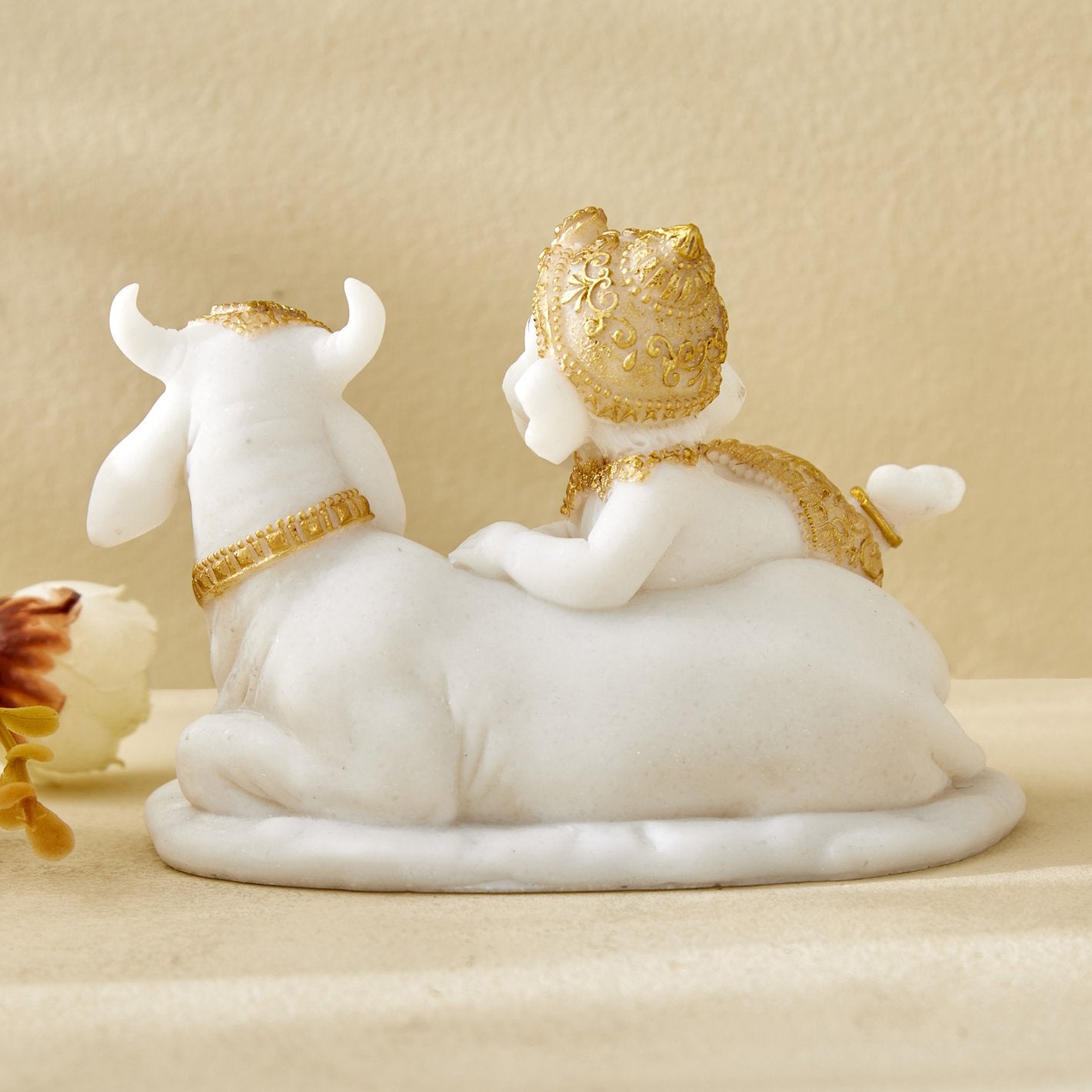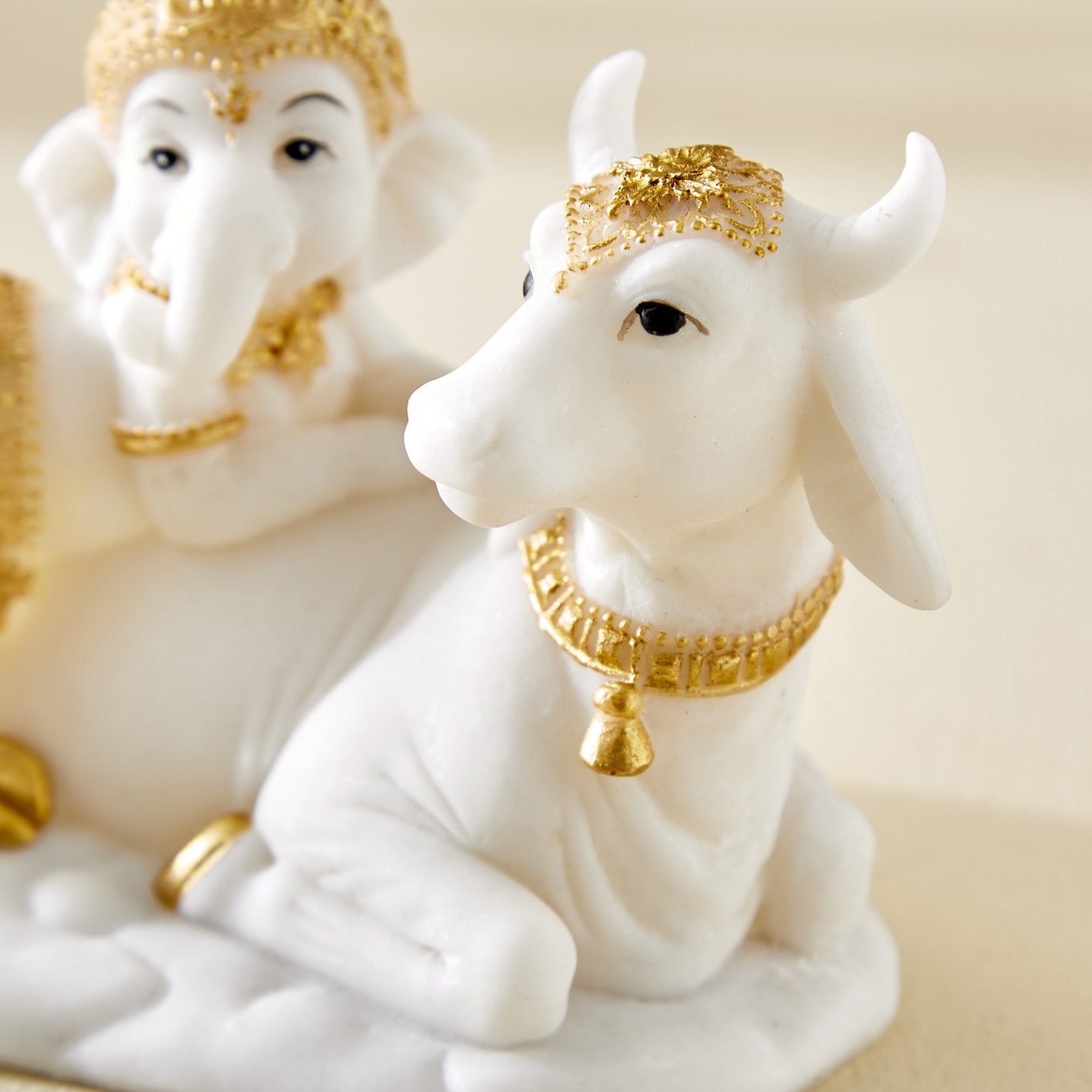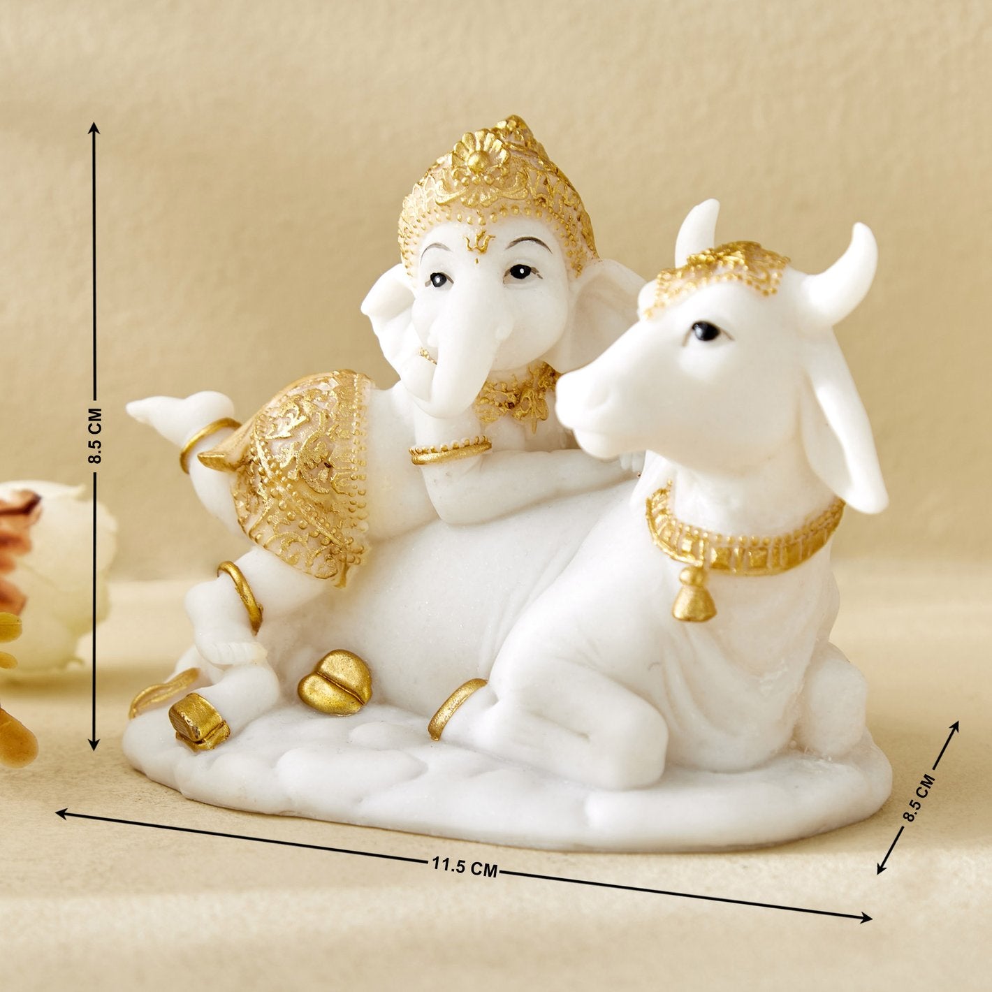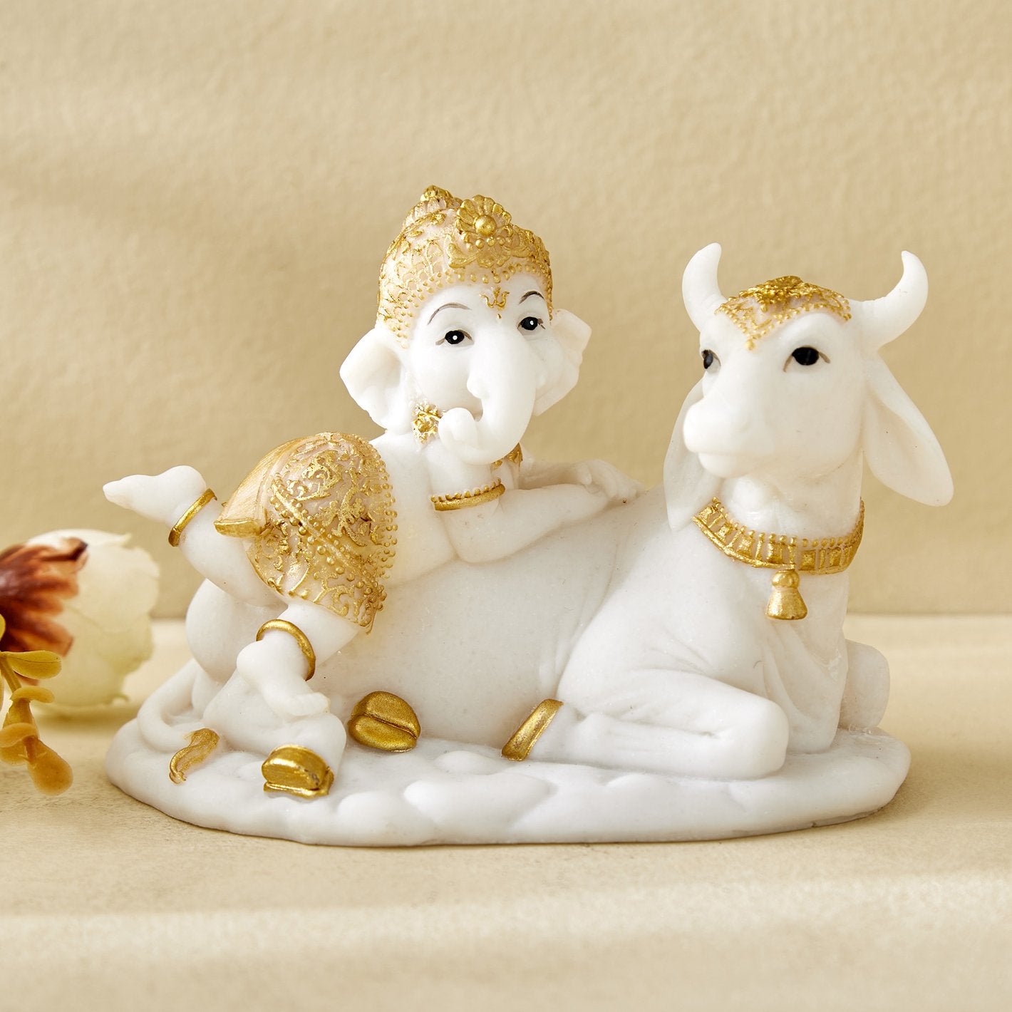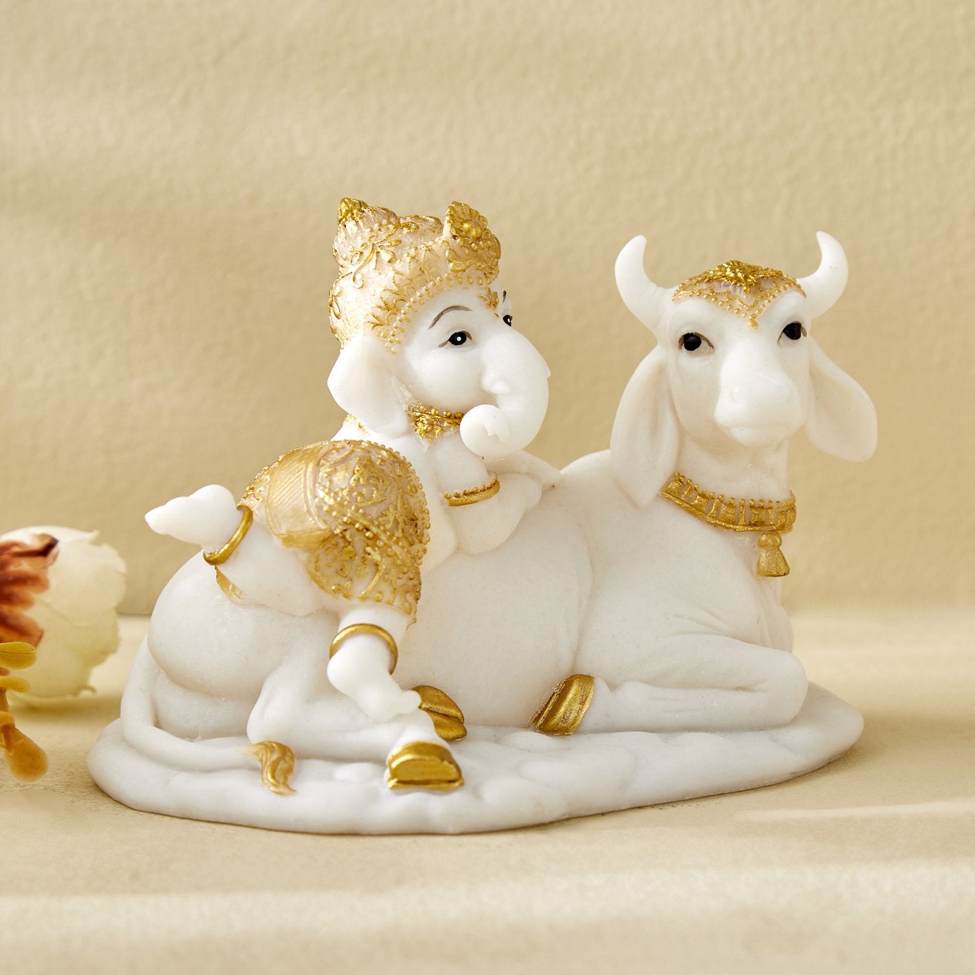 Artistic Ganesha on Nandi Cow Figure | Resin Home Decoration Miniature-Symbol of Prosperity & Abundance – Decorative Piece