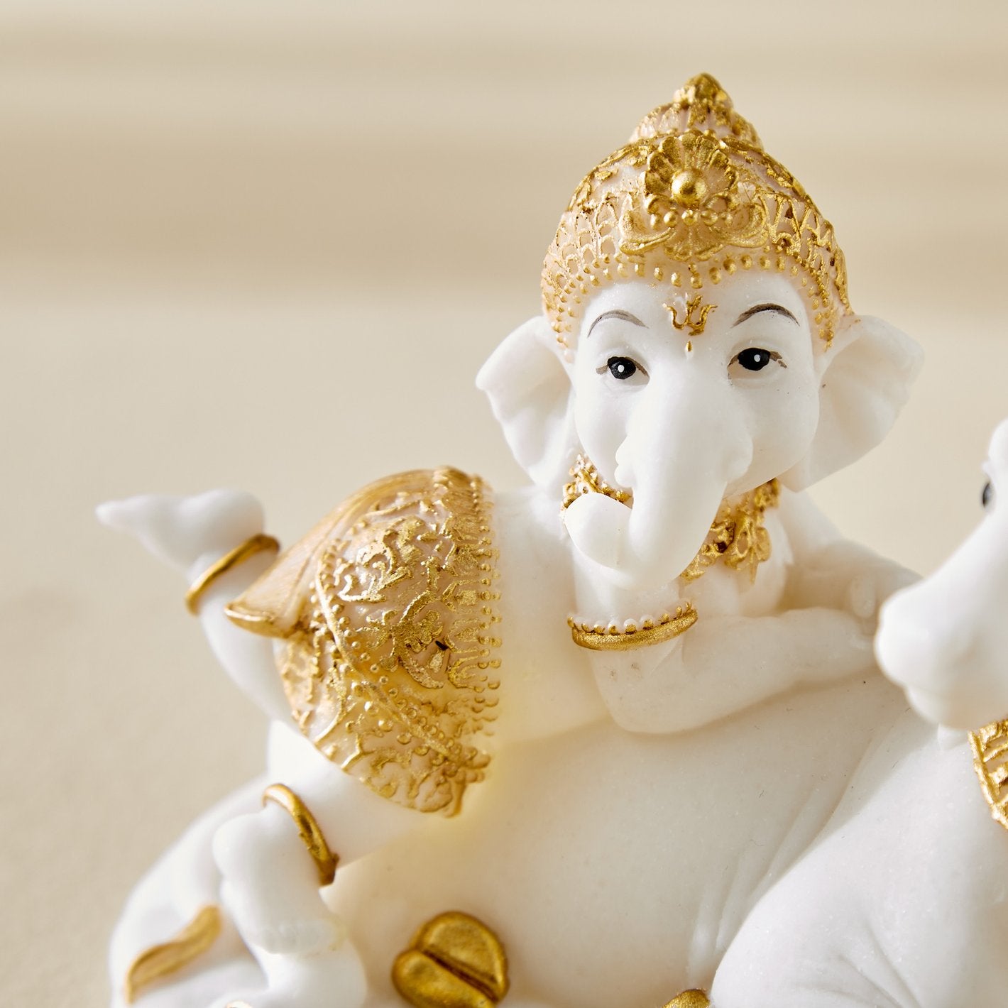 Expressive, this Ganesha idol is meticulously crafted from resin-made. Perfect for festive gifting and celebrations, bringing beauty to your home temple, office desk or study. Our beautiful Ganesh idol adds spiritual grace to your home décor and makes an ideal Diwali or housewarming gift. Symbolic Divine Duo: This exquisite polyresin figurine gracefully portrays Lord Ganesha with the sacred Nandi cow, representing purity, strength, and divine blessings. Pristine White and Gold Finish: Crafted in a pristine white finish with detailed gold detailing on Ganesha' attire and Nandi' ornaments, exuding elegance and spiritual grandeur. Artistry: Each figurine is meticulously crafted by hand, showcasing fine artistry and attention to detail in every curve and contour. Fortunate Home Accent: Perfect for your puja room, living room, office, or meditation space, this figurine enhances the spiritual ambiance and invites prosperity. Remover of Obstacles: Lord Ganesha, seated with Nandi, symbolizes the removal of obstacles and the paving of the path to success and wisdom. Durable Polyresin Material: Made from high- durable polyresin, ensuring the figurine' longevity and lasting beauty for years to come. Thoughtful and Meaningful Gift: An ideal gift for housewarmings, weddings, festivals, or any occasion celebrating new beginnings and blessings. An elegant addition to your home or workspace. Perfect for devotees looking for orange colour ganesh murti, orange colour ganpati and ganesha with laptop, this Ganesh statue brings blessings and elegance to your space.