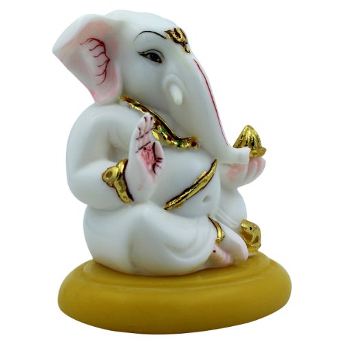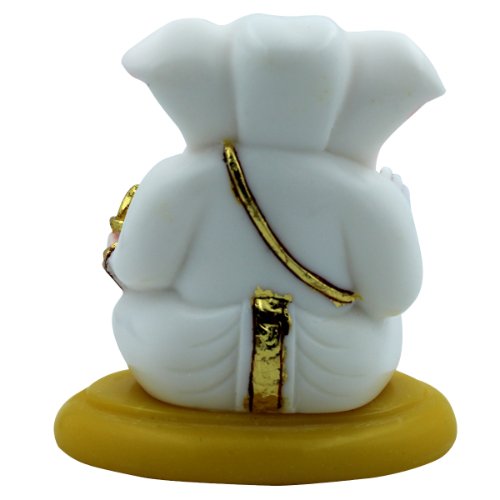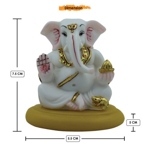 Creative and lavish, this Ganesha idol is skillfully crafted from premium materials. A heartwarming gift for family and friends, brightening up any nook, workspace or spiritual corner. Our beautiful Ganesh idol adds spiritual grace to your home décor and makes an ideal Diwali or housewarming gift. Compact and Dashboard Friendly: This small and charming Ganesha figurine is ideally sized to fit perfectly on a car dashboard, bringing blessings and positive energy to your travels. Serene White and Gold Finish: The figurine features a clean white body, gracefully accented with rich golden details on Ganesha' jewelry, lower garment, and the modak in his hand. Blessing Hand Gesture: Ganesha' right hand is raised in a gesture of blessing (Abhaya Mudra), offering protection and fearlessness to his devotees. Sweet Modak: In his left hand, Ganesha holds a golden modak, his favorite sweet, symbolizing prosperity and the fulfillment of desires. Vibrant Yellow Base: The figurine sits firmly on a contrasting bright yellow circular base, adding a cheerful pop of colour and stability. Divine Presence: Represents Lord Ganesha, the revered Hindu deity known as the remover of obstacles, the lord of beginnings, and the patron of arts and sciences. Versatile Home Decor: Beyond car dashboards, it' also perfect for small altars, office desks, study tables, or as a decorative piece in any corner of your home. Fortunate Gift: A thoughtful and fortunate gift for new car owners, housewarmings, festivals like Ganesh Chaturthi, Diwali, or any occasion to share excellent wishes and blessings. An elegant addition to your home or workspace. Perfect for devotees looking for orange colour ganesh murti, orange colour ganpati and ganesha with laptop, this Ganesh statue brings blessings and elegance to your space.