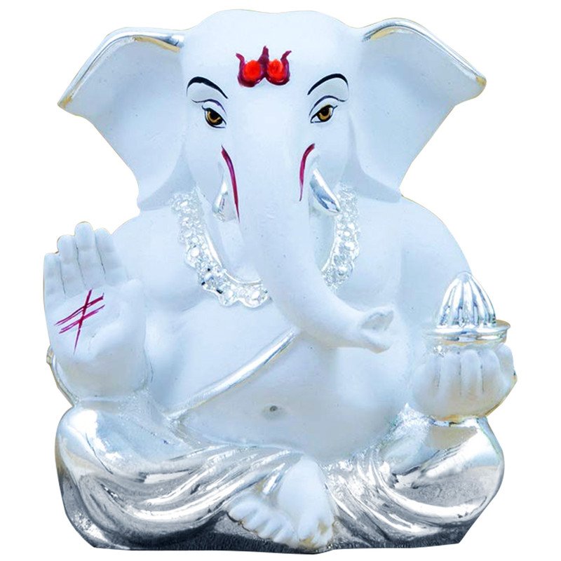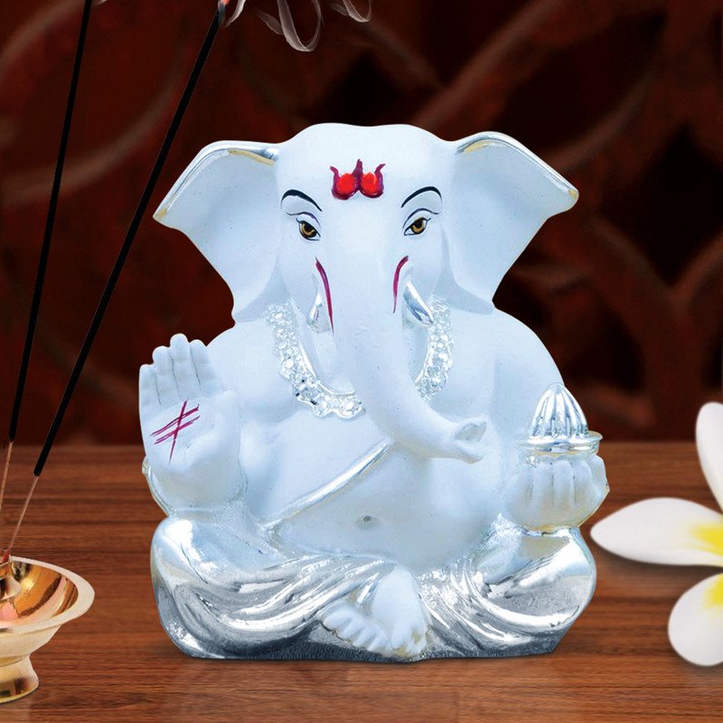 Expressive, this Ganesha idol is beautifully made from premium materials. An excellent choice for spiritual and decorative gifting, gracefully decorating your table, shelf or altar. Our beautiful Ganesh idol adds spiritual grace to your home décor and makes an ideal Diwali or housewarming gift. Pure and Serene Presence: Features a gracefully crafted Lord Ganesha figurine in pristine white, symbolizing purity, peace, and spiritual clarity, perfect for creating a calm ambiance. Refined Silver Accents: Adorned with delicate silver plating on the dhoti and jewelry, adding a touch of sophistication and divine luster to the figurine' overall appeal. Detailed Miniaturized Details: Despite its compact size, the figurine showcases meticulous sculpting on Ganesha' features, crown, and ornaments, highlighting fine artistry. Thoughtful and Fortunate Gift: An excellent choice for housewarmings, festivals, new ventures, or as a loving token for anyone seeking spiritual tranquility and prosperity. Infuses Spaces with Calm: This charming mini Ganesha serves as a constant source of inspiration and peace, subtly radiating positive vibrations throughout your personal space. An elegant addition to your home or workspace. Perfect for devotees looking for orange colour ganesh murti, orange colour ganpati and ganesha with laptop, this Ganesh statue brings blessings and elegance to your space.