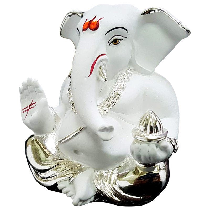 Artistic Trendy White Pottery Ganesha Figurine for Car Dashboard I Gifting – Home Decoration