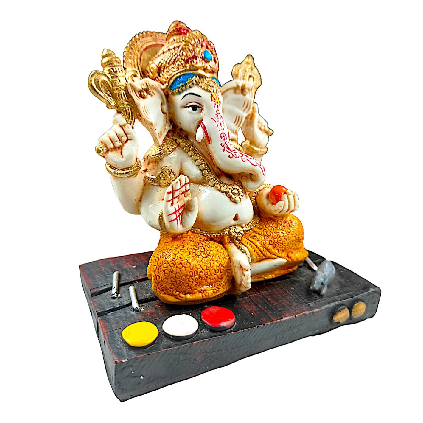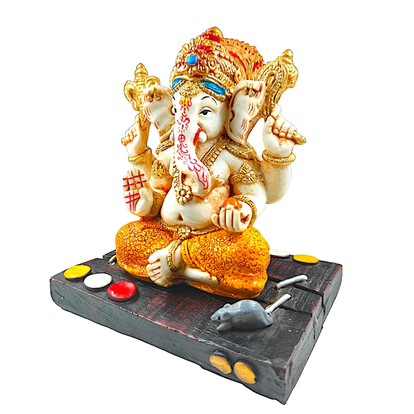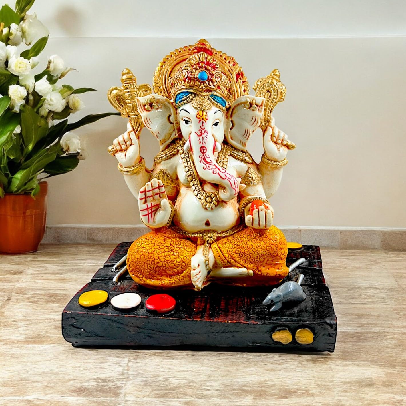 Chic Resin Lord Ganesha Figure with Ornate Base | Ganesh Murti for Home Temple & Living Room Decoration | Lucky Gifting | Prosperity & Good Luck – Luxurious Accent