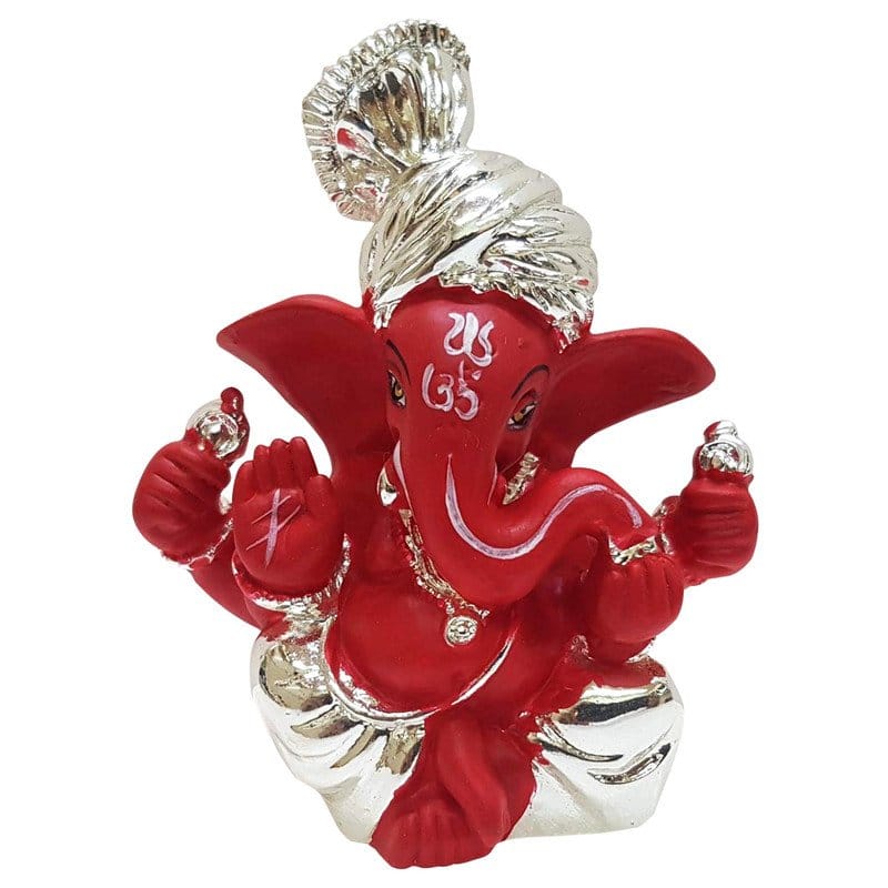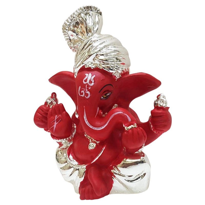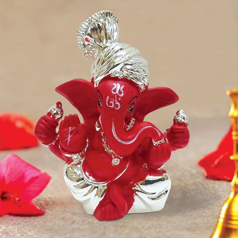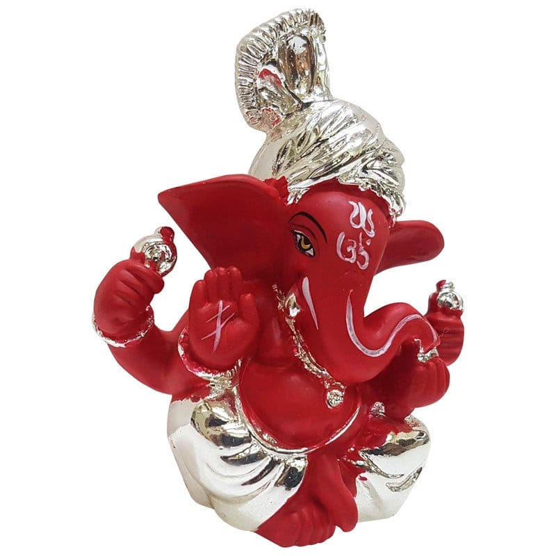 Elegant and opulent, this Ganesha idol is exquisitely crafted from premium materials. An ideal gift for housewarmings and festivals, suiting any living room, meditation area or office. Our beautiful Ganesh idol adds spiritual grace to your home décor and makes an ideal Diwali or housewarming gift. Striking Red and Silver Finish: The figurine boasts a rich red body gracefully contrasted with lustrous silver- accents on its crown, dhoti, and other ornate details, creating a truly eye- display. This color combination symbolizes power, auspiciousness, and purity. Blessing Mudra and Fortunate Presence: Lord Ganesha is depicted in a classic seated posture, with one hand raised in a blessing gesture, signifying protection and the showering of excellent fortune upon devotees. Perfect Spiritual Centrepiece: Refined and Meaningful Gift: A thoughtful and precious gift for housewarmings, festivals like Ganesh Chaturthi and Diwali, or for anyone seeking peace, prosperity, and divine blessings. Durable Craftsmanship and Easy Care: Meticulously crafted from durable materials, this figurine ensures lasting beauty and preservation of its detailed details. Simply wipe with a soft, dry cloth to maintain its radiant shine. Remover of Obstacles: Ganesha, the Vighnaharta, is revered as the remover of all obstacles, making this figurine a powerful emblem for new beginnings and overcoming challenges. Enhances Dcor: Beyond its spiritual significance, the figurine' one-of-a-kind color combination and refined design make it a standout piece that complements various interior dcor styles, adding a touch of classic charm with a contemporary twist. Makes an eye-catching addition to your office or home. Perfect for devotees looking for orange colour ganesh murti, orange colour ganpati and ganesha with laptop, this Ganesh statue brings blessings and elegance to your space.