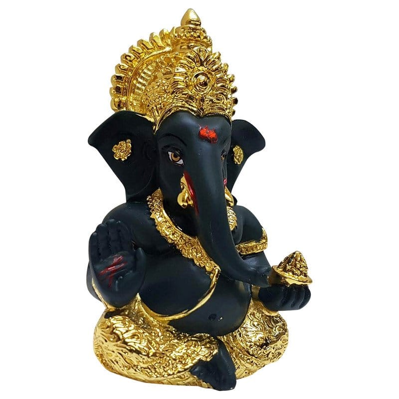 Refined and luxurious, this Ganesha idol is meticulously crafted from premium materials. A wonderful housewarming or festival gift, decorating your dining room, entryway or home temple. Our beautiful Ganesh idol adds spiritual grace to your home décor and makes an ideal Diwali or housewarming gift. Distinctive Colour Palette: The one-of-a-kind combination of matte black and lustrous gold creates a sophisticated and eye- aesthetic, making it a focal point in any setting. Emblem of Divine Power: Represents Lord Ganesha, the harbinger of excellent fortune and the remover of obstacles, inspiring strength and success in all endeavors. Regal Gold- Mukut: The prominent gold- crown signifies Ganesha' supreme authority and blessing, adding an extra touch of grandeur. Versatile Home Decor Accent: Fortunate Gifting Option: A perfect and meaningful gift for housewarmings, festivals like Diwali and Ganesh Chaturthi, weddings, or any occasion that calls for a blessing. Artisan Craftsmanship: Displays exceptional detailing and finish, highlighting the detailed features of Ganesha and the richness of the gold plating. Brings Prosperity and Harmony: Believed to attract wealth, happiness, and peace, making it a powerful addition to your home' spiritual home decor. Enhances the ambiance of living rooms, bedrooms, and offices. Perfect for devotees looking for orange colour ganesh murti, orange colour ganpati and ganesha with laptop, this Ganesh statue brings blessings and elegance to your space.