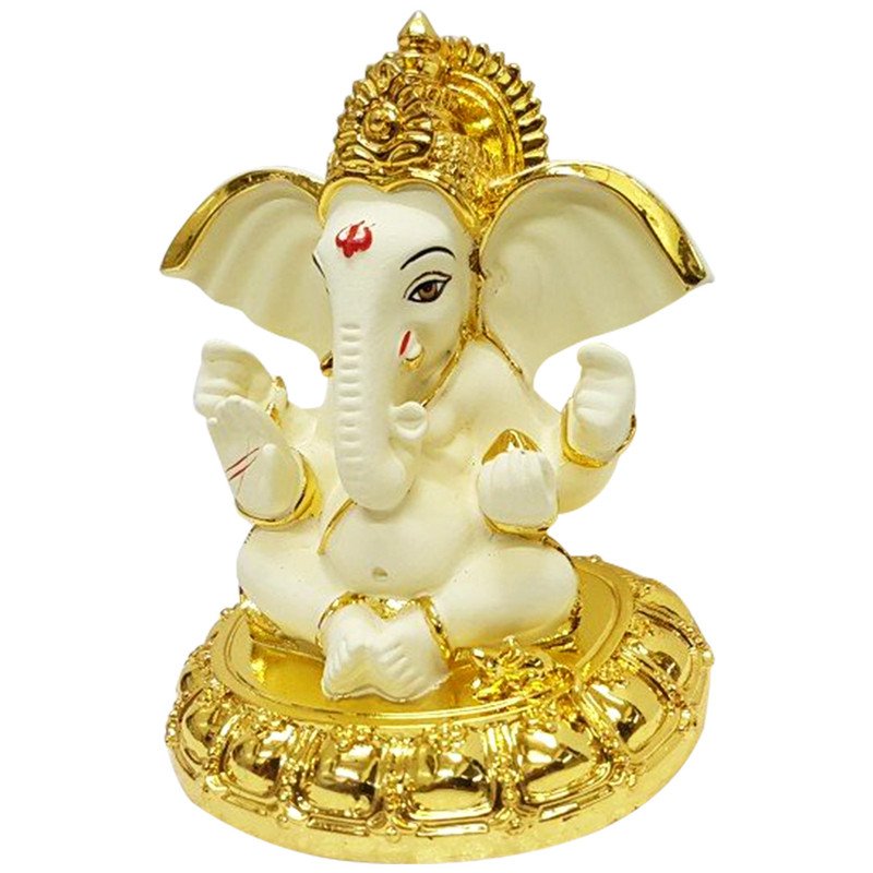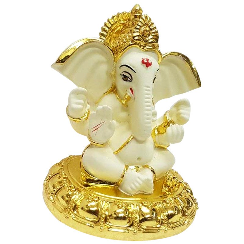 Graceful Plating Yellow Pottery Ganesha Figure for Car Dashboard I Gifting – Premium Home Decor