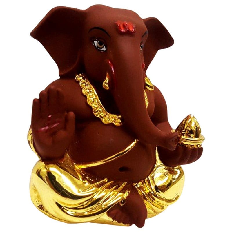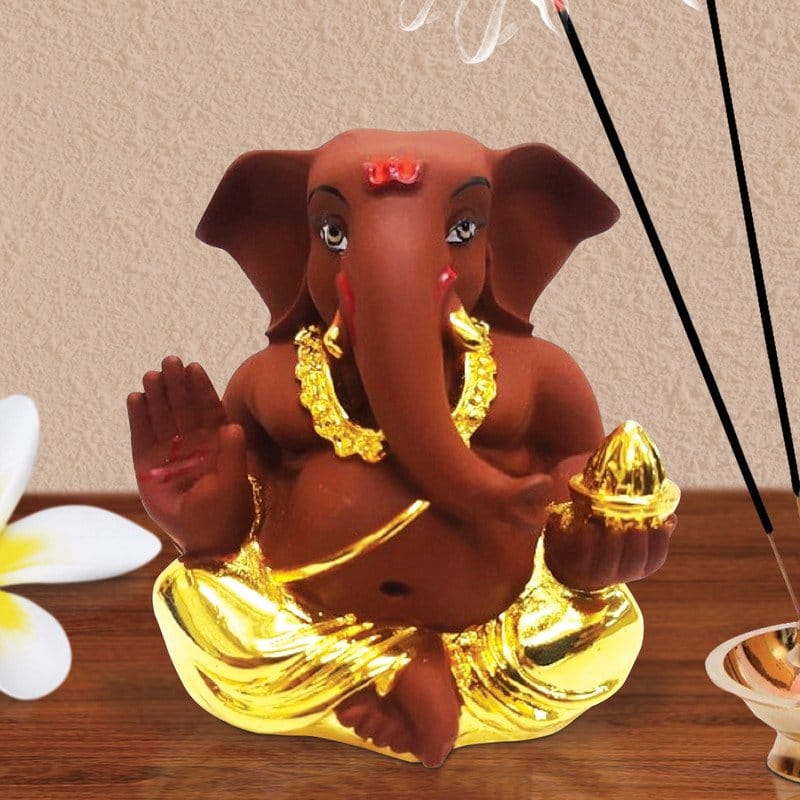 Refined and premium, this Ganesha idol is skillfully crafted from glazed ceramic. A heartwarming gift for family and friends, brightening up any nook, workspace or spiritual corner. Our beautiful Ganesh idol adds spiritual grace to your home décor and makes an ideal Diwali or housewarming gift. Earthy Brown and Golden Splendor: This captivating Ganesha statue boasts a rare and rich brown colour, exquisitely contrasted with shimmering golden accents on his dhoti, crown, and detailed jewelry, creating a distinguished and grounding aesthetic. Abhaya Mudra and Modak: Lord Ganesha' right hand is raised in the Abhaya Mudra, symbolizing blessings and protection, while his left hand holds a modak (sweet), signifying the sweet rewards of spiritual pursuit and prosperity. Classic Detailing: The statue features classic red markings (tilak) on his forehead and hand, along with finely crafted details on his ornaments, enhancing its divine charm and authentic appeal. Emblem of Stability and Wisdom: The brown colour is often associated with stability, strength, and a deep connection to the earth, complementing Ganesha' role as the bringer of wisdom and remover of obstacles. Fortunate Presence for Any Setting: Perfect for puja altars, living room displays, office desks, or as a thoughtful centrepiece, adding both spiritual significance and a touch of serene elegance. Durable Polyresin Craftsmanship: Crafted from high- polyresin, this "Ganesha" statue ensures durability and maintains its detailed details and distinctive colour for years to come. Radiates Calm and Positive Energy (New Pointer): The serene pose and earthy tones of this Ganesha are believed to promote a calm and stable environment, inviting positive and serene vibrations into your surroundings. Distinctive and Memorable Gift: A distinctive and meaningful gift for housewarmings, birthdays, festivals like Ganesh Chaturthi and Diwali, or for anyone who appreciates distinctive spiritual art and home decor. Perfect for devotees looking for orange colour ganesh murti, orange colour ganpati and ganesha with laptop, this Ganesh statue brings blessings and elegance to your space.