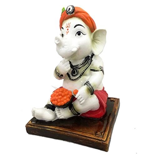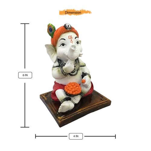 Opulent, this Krishna idol is skillfully crafted from premium materials. A heartwarming gift for family and friends, brightening up any nook, workspace or spiritual corner. Our beautiful Ganesh idol adds spiritual grace to your home décor and makes an ideal Diwali or housewarming gift. Showcase your style with this luxurious little lord. Most Adorable Little Ganesha: Features a delightful depiction of Lord Ganesha as a little, joyfully eating a ladoo, symbolizing sweet rewards, happiness, and innocence. Charming and Playful Details: From his expressive eyes and tiny trunk to the classic dhoti and peacock feather, every detail is meticulously crafted with endearing charm. Perfect for New Beginnings: An exceptional and heart warming gift for little showers, birthdays, housewarmings, or for anyone welcoming joy and prosperity into their lives. Infuses Spaces with Joy: Fortunate and Beloved Presence: Beyond its charm, this statue embodies Ganesha' blessings for wisdom, success, and obstacle removal, presented in a lovable form. Emblem of Sweet Prosperity: The ladoo in his hand signifies prosperity and abundance, making this statue a delightful reminder of life' sweet moments and blessings. Suitable for display on shelves, mantels, or desks. Perfect for devotees looking for orange colour ganesh murti, orange colour ganpati and ganesha with laptop, this Ganesh statue brings blessings and elegance to your space.