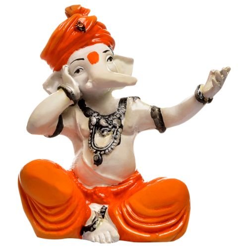 Premium Distinctive Little Lord Ganesha Singing Figure Orange Best for Home Home Decor – Artful Decor Piece