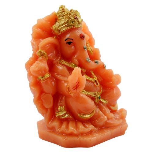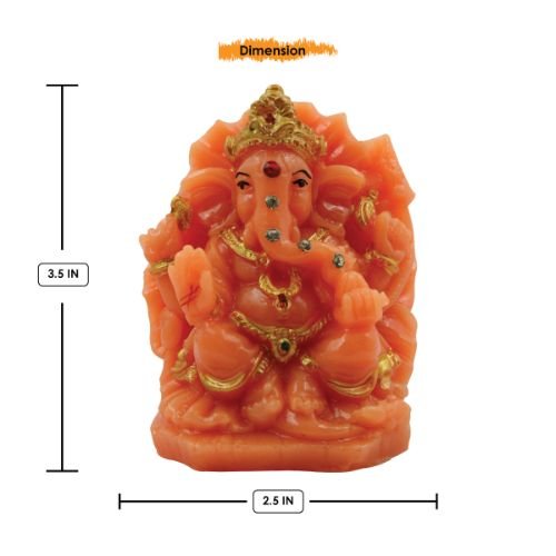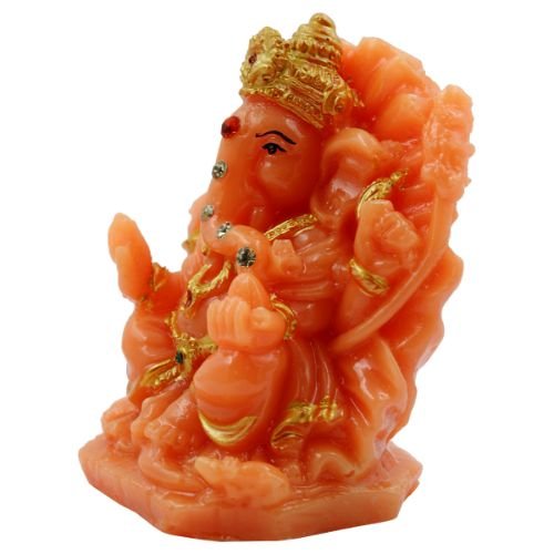 Premium Lord Ganesha sitting On Sihansan Crown Orange Colour Figure for Home Decor – Unique Decor Piece