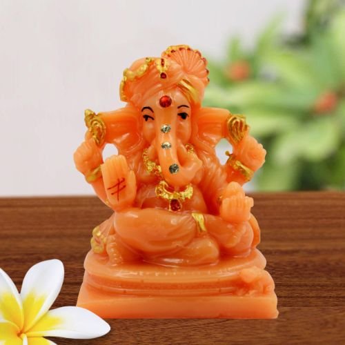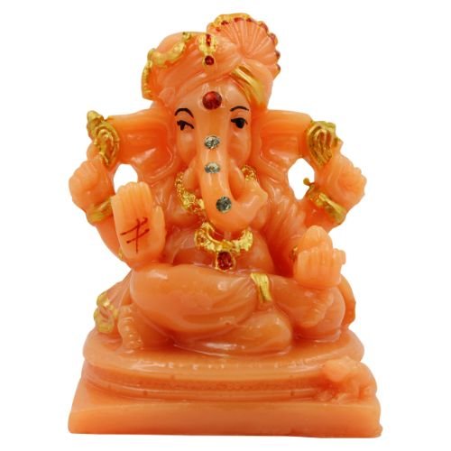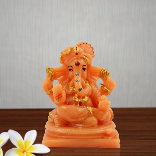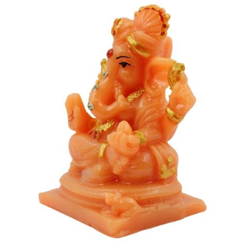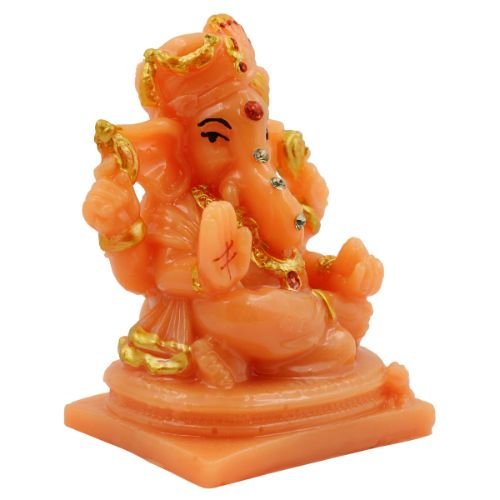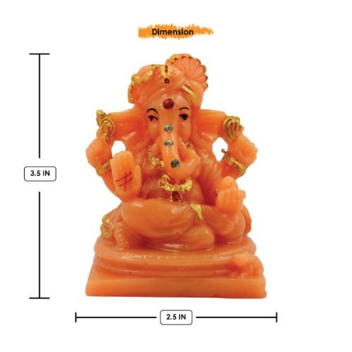 Premium Lord Ganesha Sitting with Two Leg Fold Orange Colour Figurine for Home Home Decor – Luxurious Accent