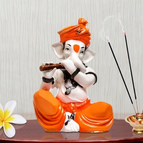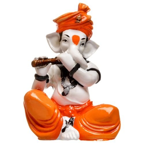 Stylish Distinctive Little Lord Ganesha Playing Flute Figure Orange Best for Home Home Decor – Home Decor Accent
