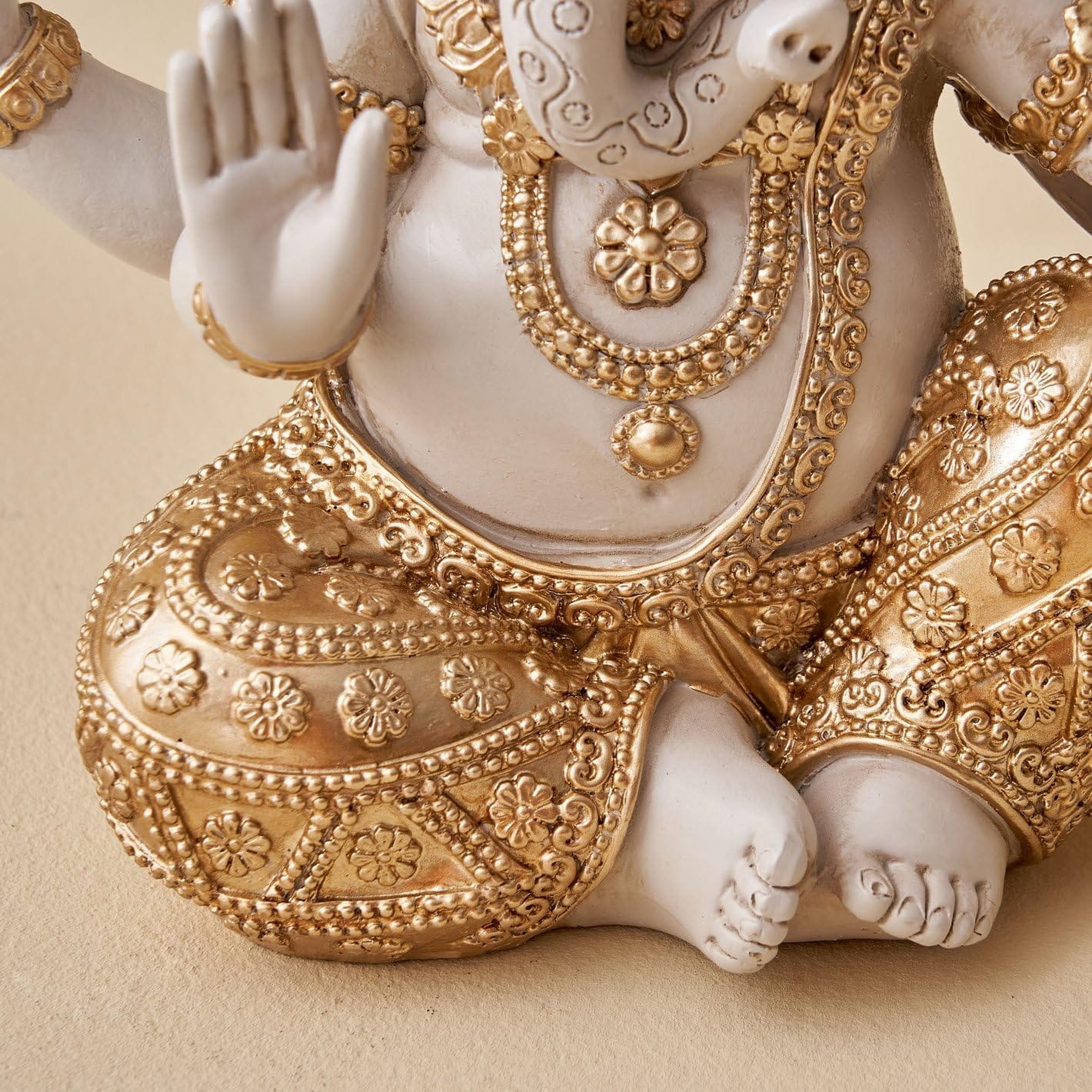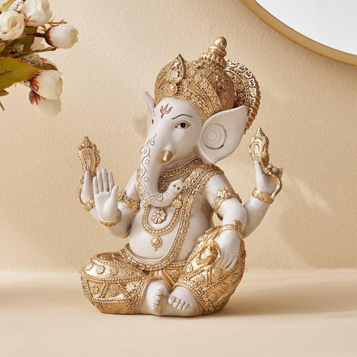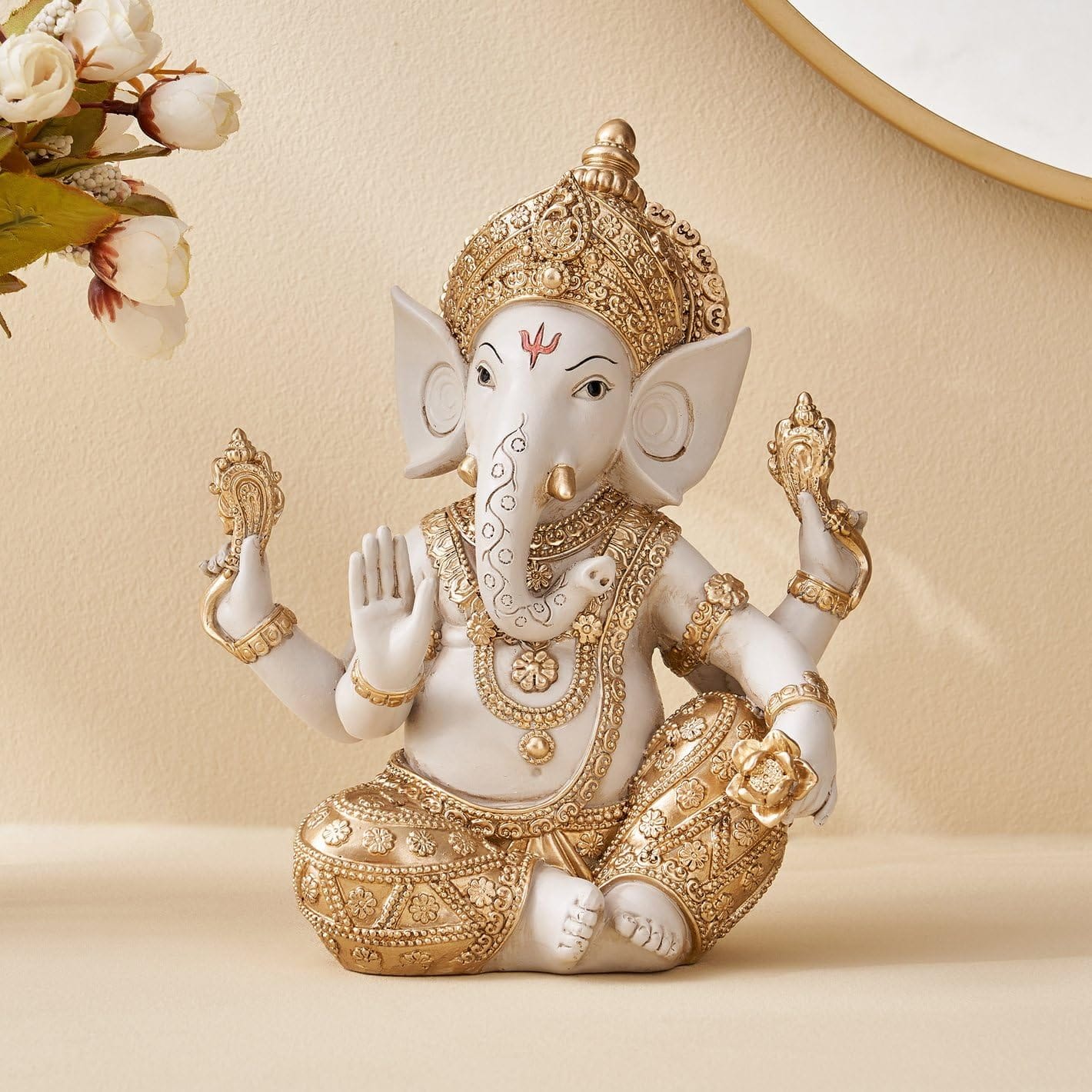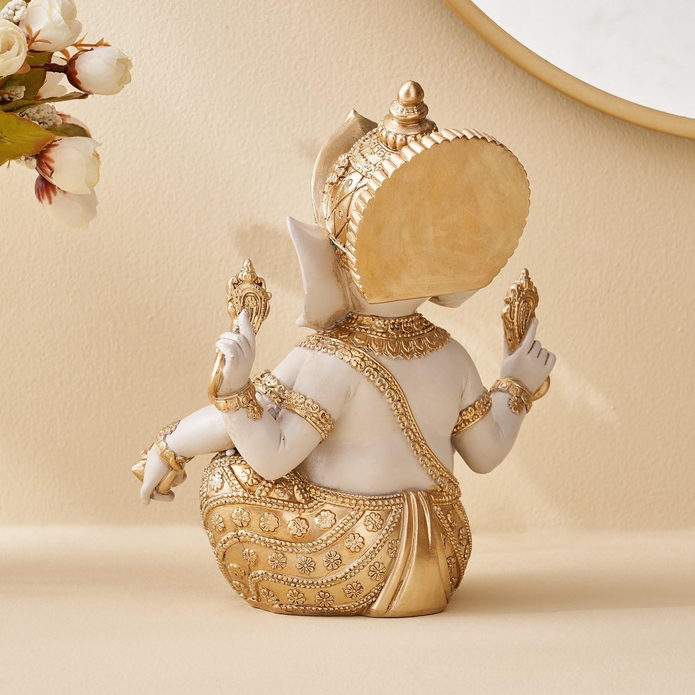 Stylish Spiritual Gold & White Resin-Crafted Ganesha Statue | Fortunate Lord Ganpati Figurine for Home Temple, Pooja & Prosperity Gifting – Stylish Accent