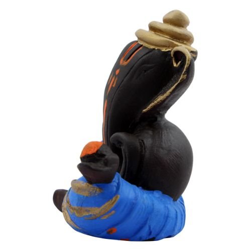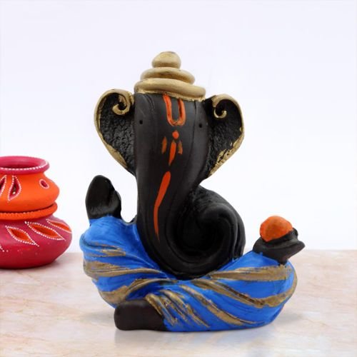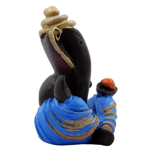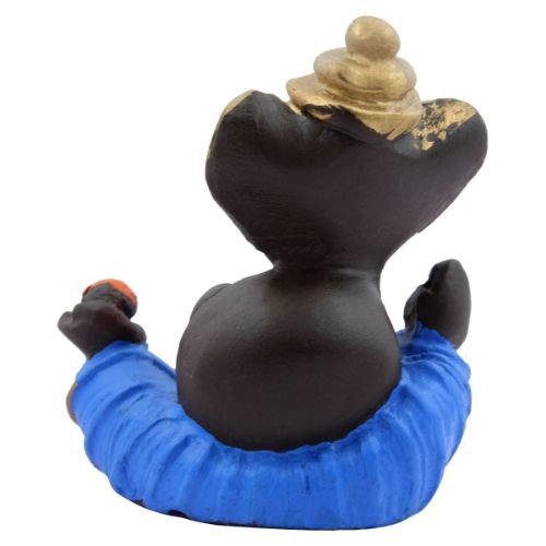 Timeless Distinctive Design Ganesh Figurine Black Color with Blue Dhoti for Home Decoration – Luxurious Accent