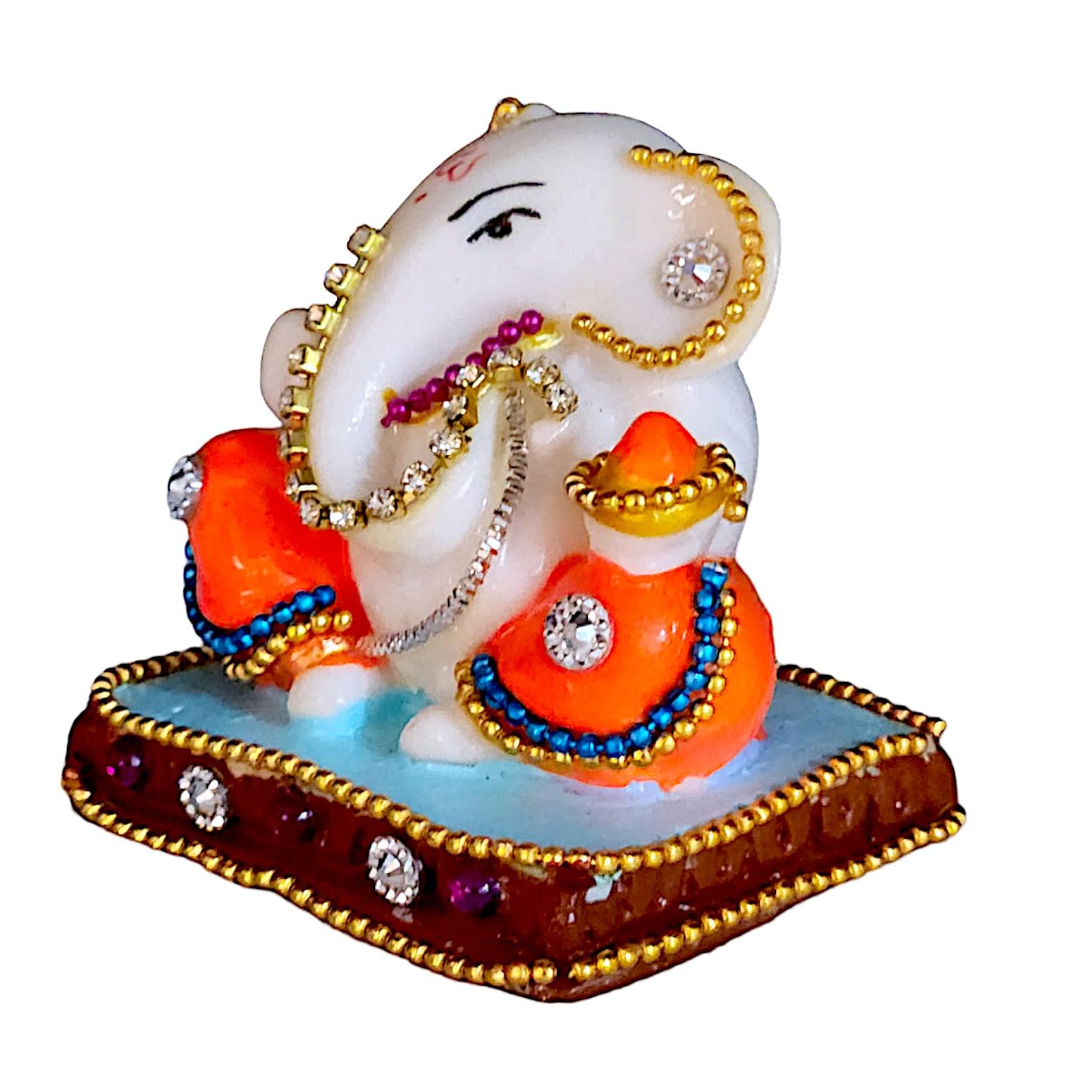 Classic and divine, this Ganesha idol is exquisitely crafted from premium resin. An ideal gift for housewarmings and festivals, suiting any living room, meditation area or office. Our beautiful Ganesh idol adds spiritual grace to your home décor and makes an ideal Diwali or housewarming gift. Emblem of Divine Blessings: Lord Ganesha is universally worshipped as the God of new beginnings, prosperity, wisdom, and success. His presence is believed to remove hurdles and attract excellent fortune. Luxury Resin Craftsmanship: Expertly sculpted from high- durable resin, this statue boasts detailed detailing and a fine finish, ensuring robust construction and a lasting divine presence. Detailed Hand- Details: Adorned with delicate hand- touches and embellishments, highlighting Ganesha' features, jewelry, and attire, making this statue a miniature work of art. Versatile Home and Office Decoration: Bringer of Wisdom and Prosperity: Ganesha' iconic form symbolizes intellect, wealth, and the ability to overcome challenges, making this statue a powerful addition for aspiring individuals and families. Meaningful Spiritual Gifting: An exceptionally thoughtful and fortunate gift for housewarmings, Diwali, Ganesh Chaturthi, weddings, business inaugurations, birthdays, or any occasion celebrating new beginnings and well-. Bring charm and elegance to your décor. Perfect for devotees looking for orange colour ganesh murti, orange colour ganpati and ganesha with laptop, this Ganesh statue brings blessings and elegance to your space.